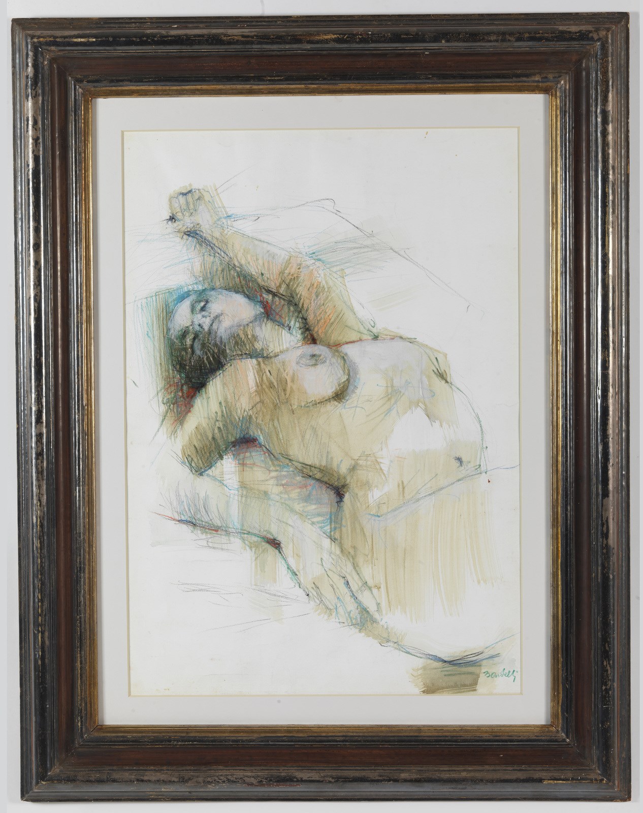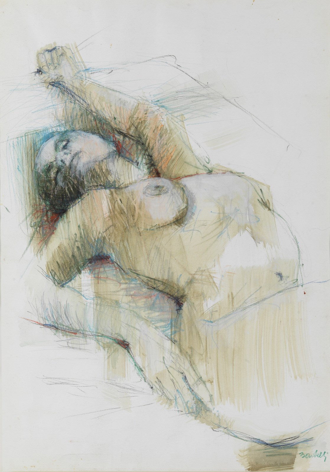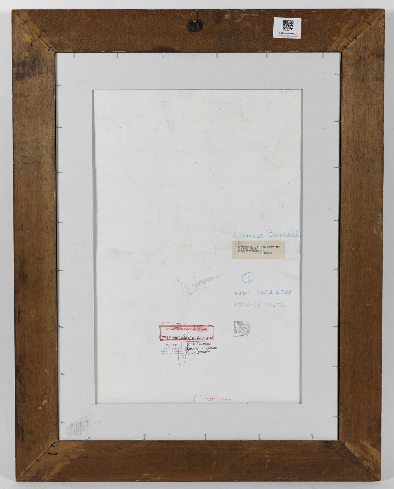 BARDELLI ADEMARO (n. 1934). Nudo sdraiato.. Firma in basso a destra. Al retro titolo e firma. Difetti.. Cm 45,00 x 65,00.
