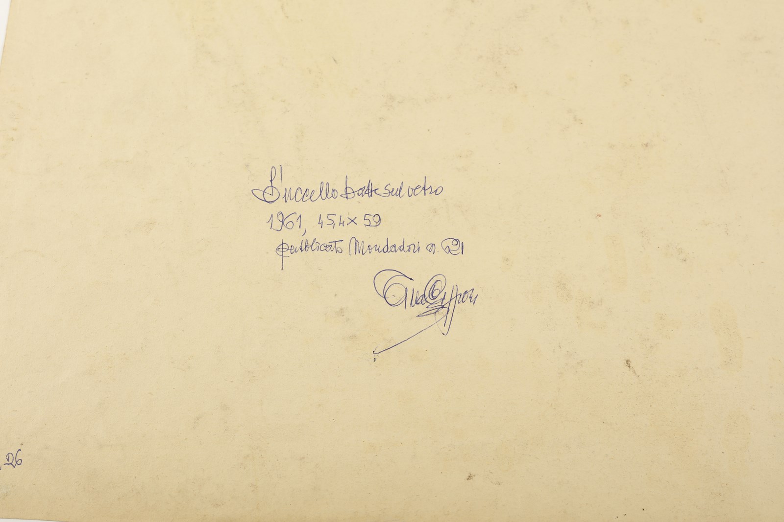 FRANCESE FRANCO (1920 - 1996). L'uccello batte sul vetro. Titolo, firma e anno in basso a destra. Pubblicazione: Franco Francese 1920-1996 a cura di Tino Gipponi ed Elena Pontiggia, Electa edizioni, Milano, 2011, tav. 621. Lievi difetti.. Cm 59,00 x 45,00. 1961