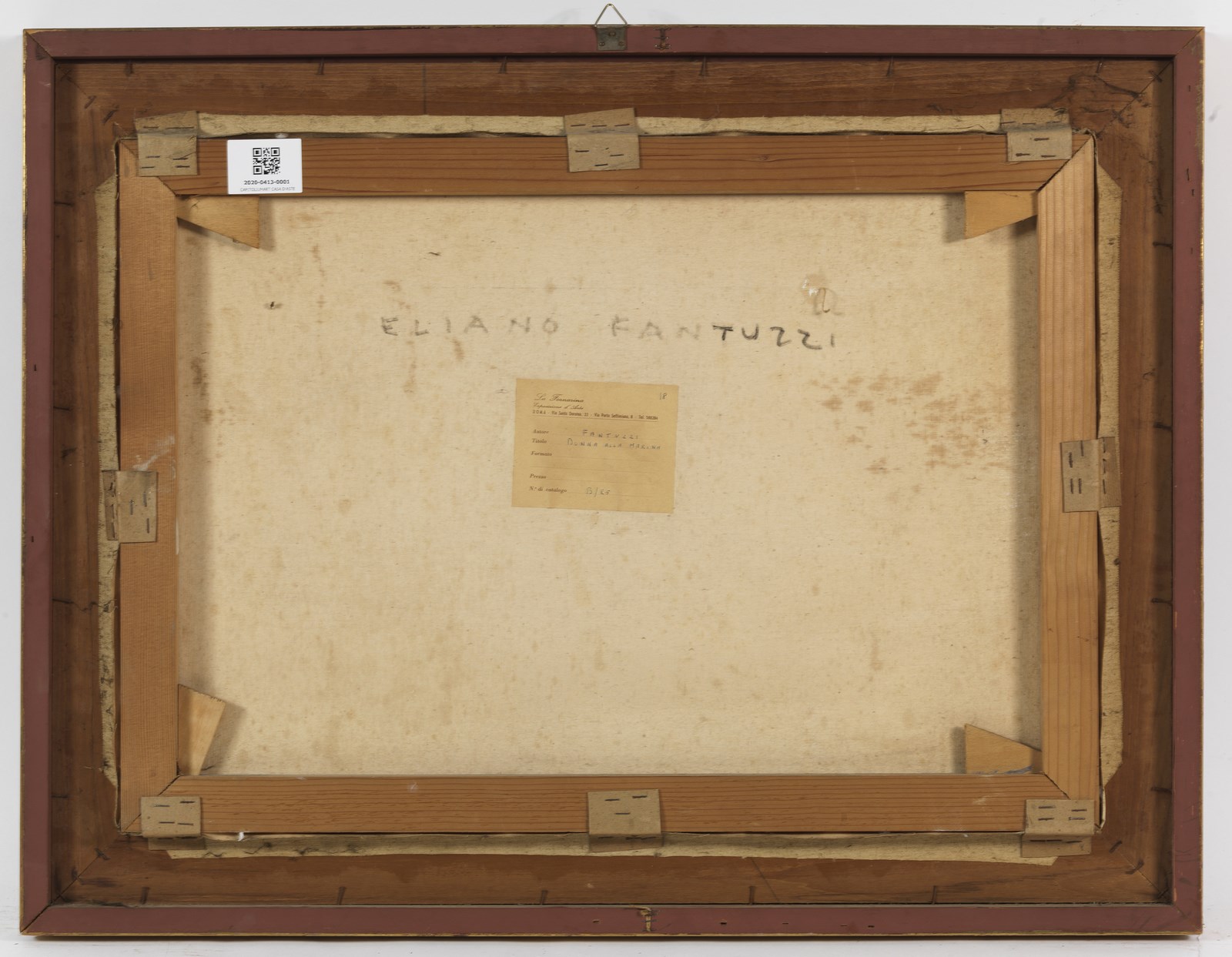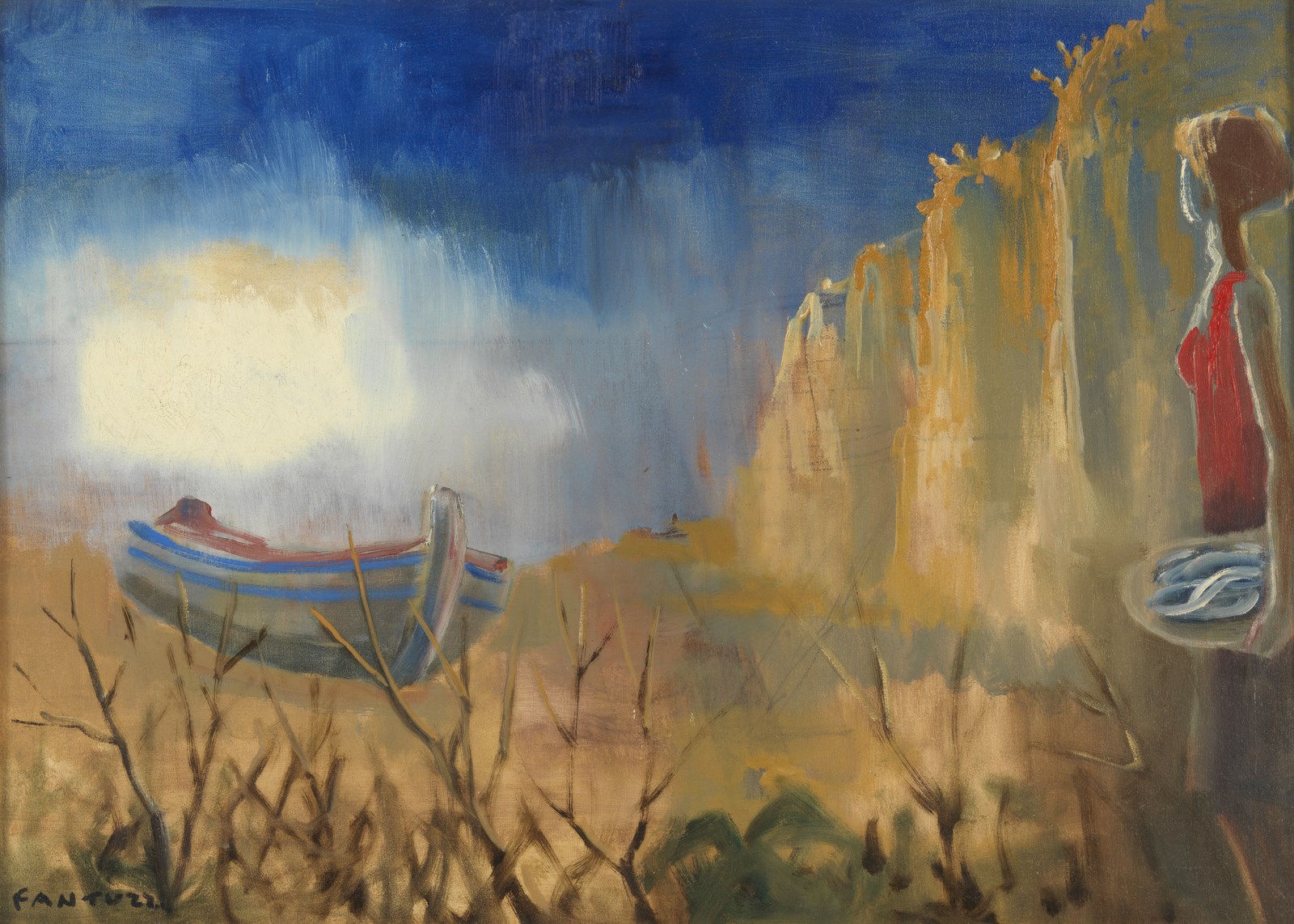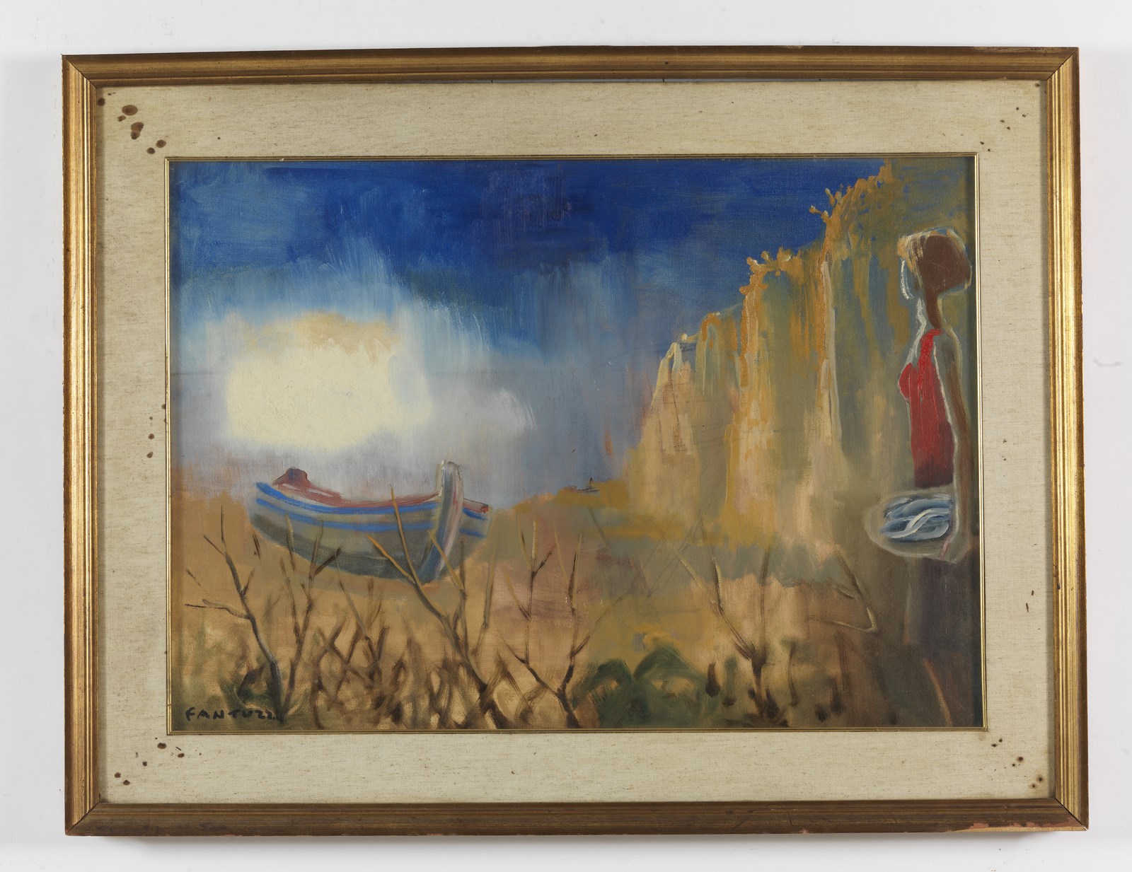 FANTUZZI ELIANO (1909 - 1987). Donna alla marina.. Firma in basso a sinistra e al retro.. Cm 67,00 x 47,00.