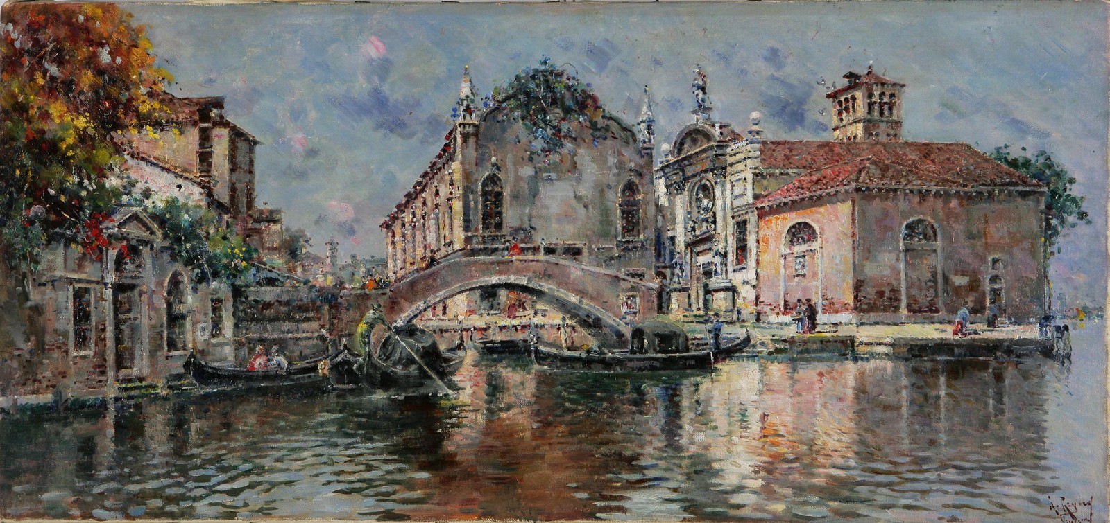 REGOSA A. Venezia Olio su tela. Cm 35,5x76. Firma in basso a destra.