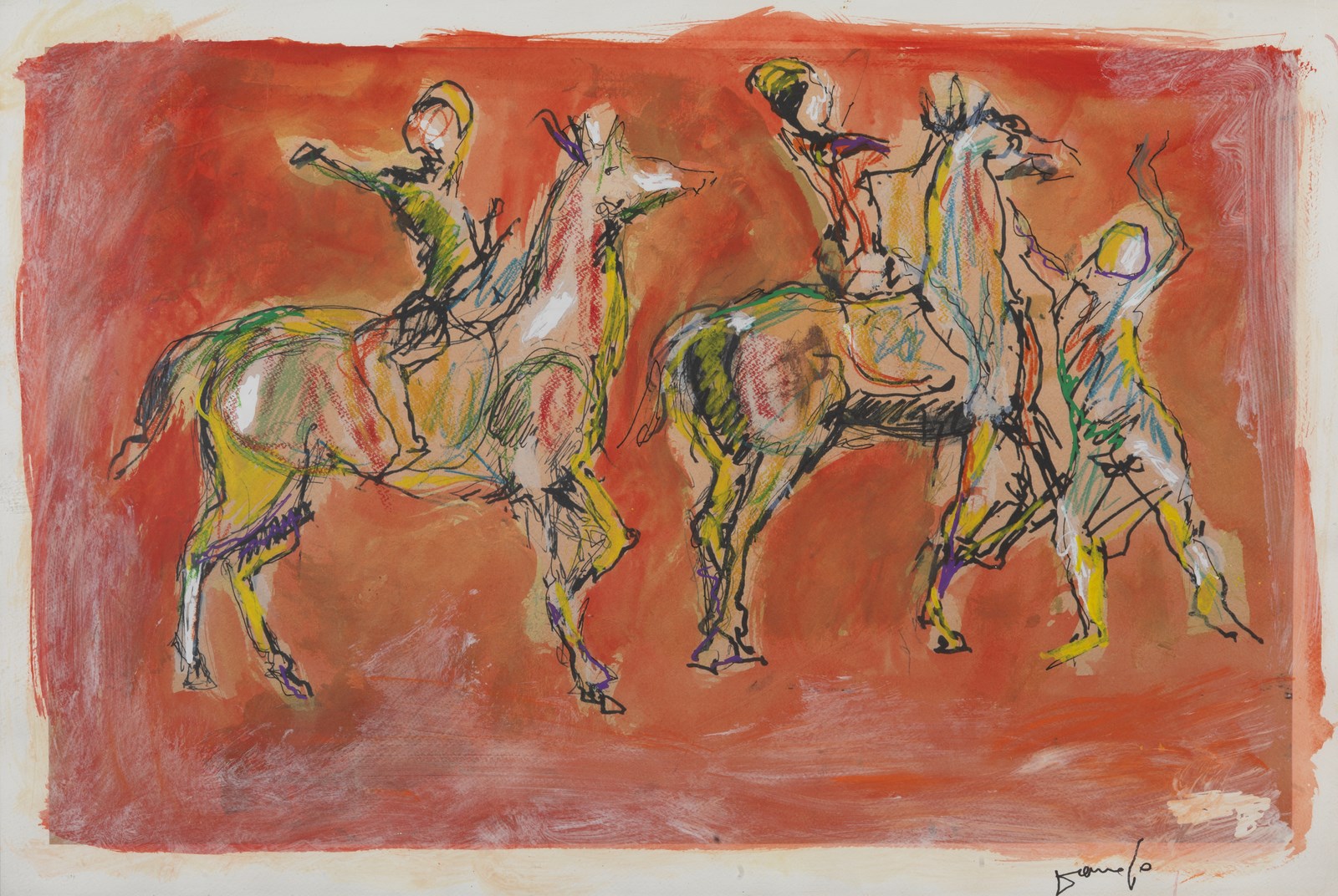 FO DARIO (1926 - 2016). Senza titolo.. Firma in basso a destra. Opera inserita nell'archivio digitale Franca Rame Dario Fo, nella sezione: Disegni, bozzetti e dipinti non collegati a opere particolari. Sitografia: http://www.archivio.francarame.it/scheda.aspx?IDScheda=66340&IDImmagine=1&IDOpera=8.. Cm 70,00 x 50,00. 2009