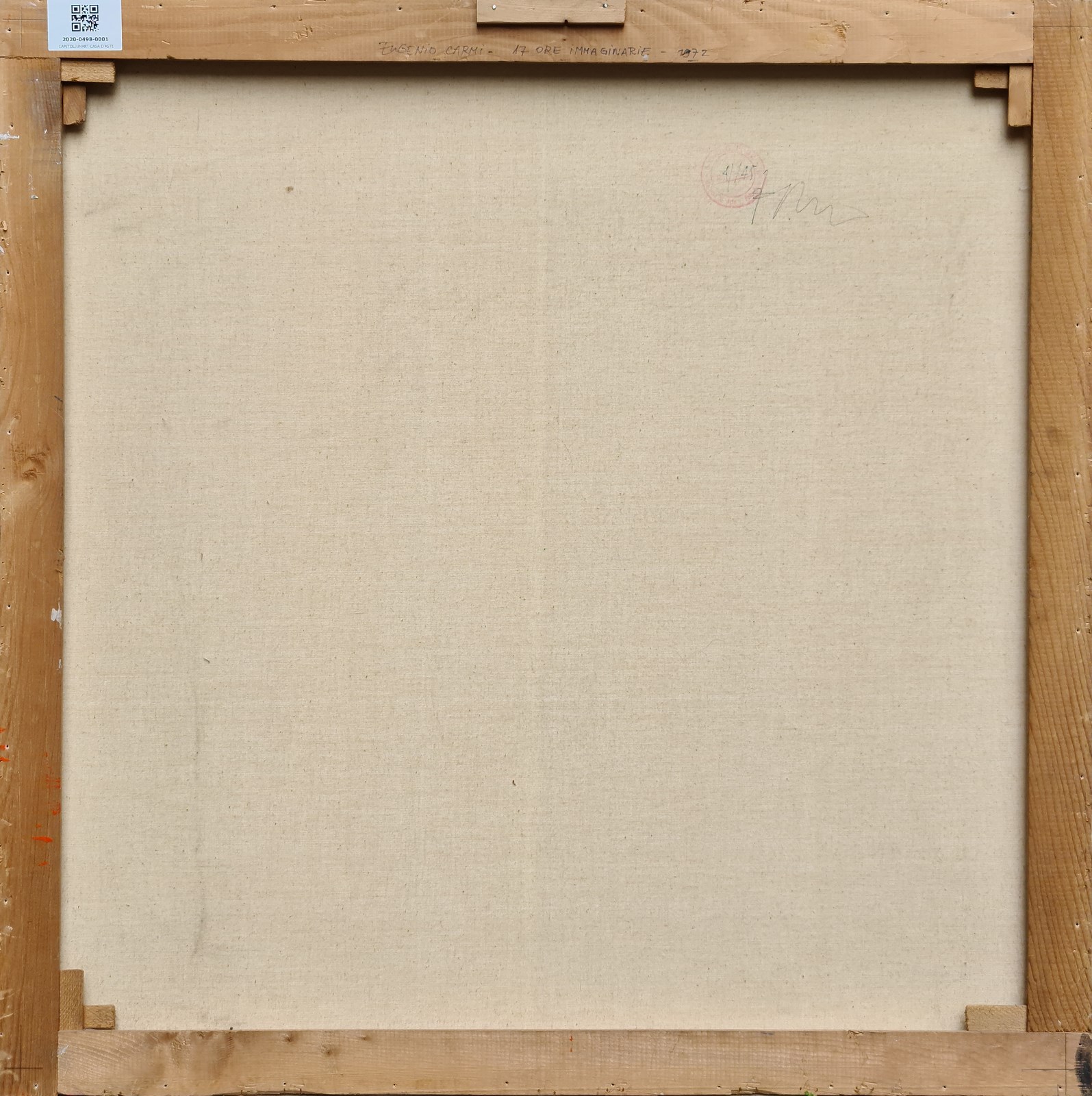 CARMI EUGENIO (n. 1920). 17 ore immaginarie.. Al retro titolo, anno e timbro della Galleria F.22, Palazzolo (Bs).. Cm 80,00 x 80,00. 1972