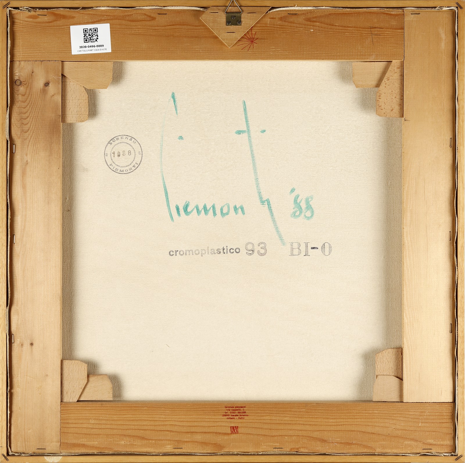 PIEMONTI LORENZO (n. 1935). Cromoplastico 93.. Al retro titolo, firma, anno e timbro dell'artista.. Cm 60,00 x 60,00. 1988