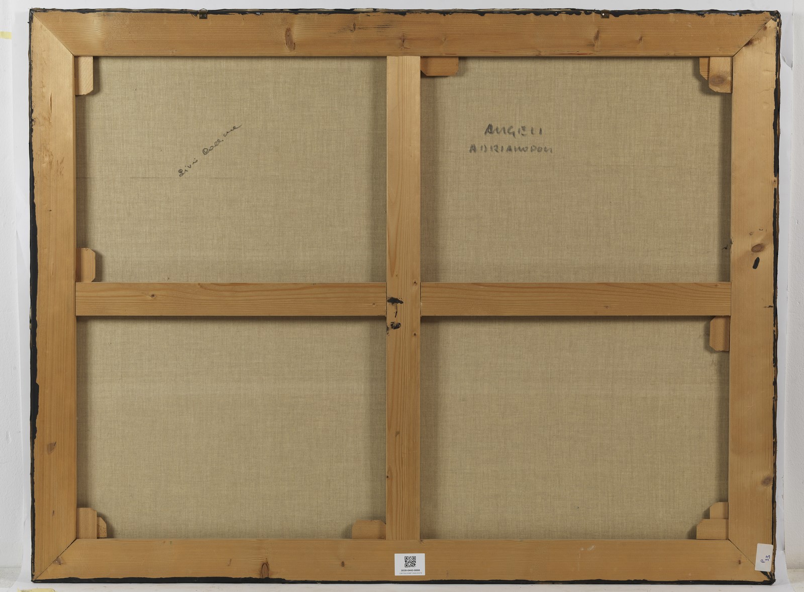 ANGELI FRANCO (1935 - 1988). Est - Est.. Firma al retro. Opera archiviata presso l'Archivio Angiolino Calestani, Milano come da documentazione fotografica allegata all'opera riportante il relativo numero d'inventario. Certificato di garanzia Galleria d'Arte Internazionale Orler. Provenienza: Collezione Mambelli. L'opera è in corso di archiviazione presso l'Archivio Franco Angeli, Roma.. Cm 130,00 x 100,00. 1988