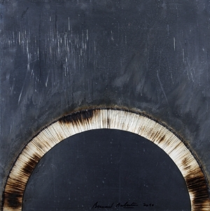 AUBERTIN BERNARD (Fontenay aux Roses 1934) “Territori di fuoco” 2010 Fiammiferi su lamiera cm. 50x50 Firma ed anno in basso al centro. Autentica dell'autore su foto.