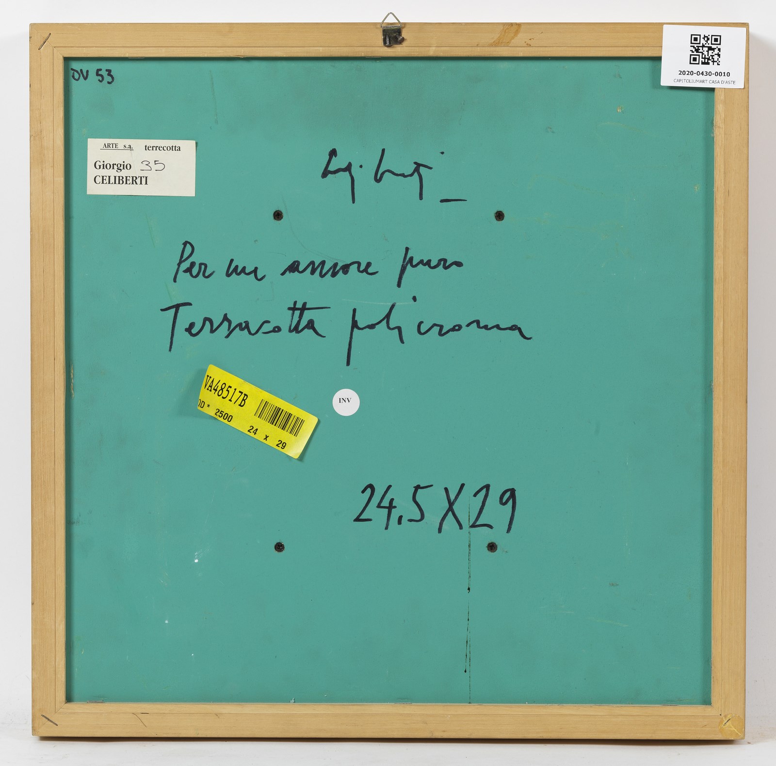 CELIBERTI GIORGIO (n. 1929). Per un amore puro.. Al retro firma e titolo. Autentica dell'artista su fotografia riportante il relativo numero d'inventario. Certificato di provenienza Telemarket, Brescia.. Cm 25,00 x 29,00 x 3,00.
