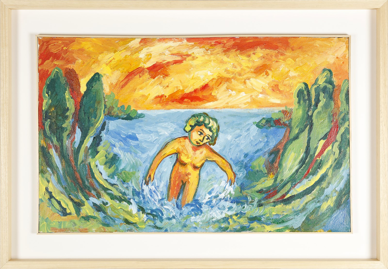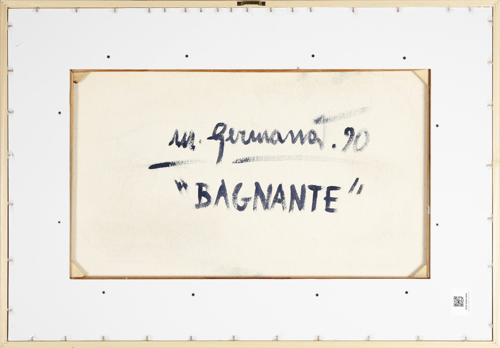 GERMANA' MIMMO (1944 - 1992). Bagnante.. Al retro titolo, firma e anno. Opera archiviata presso l'Archivio Generale dell'opera di Mimmo Germanà come da documentazione fotografica allegata all'opera riportante il relativo numero d'inventario.. Cm 80,00 x 50,00. 1990