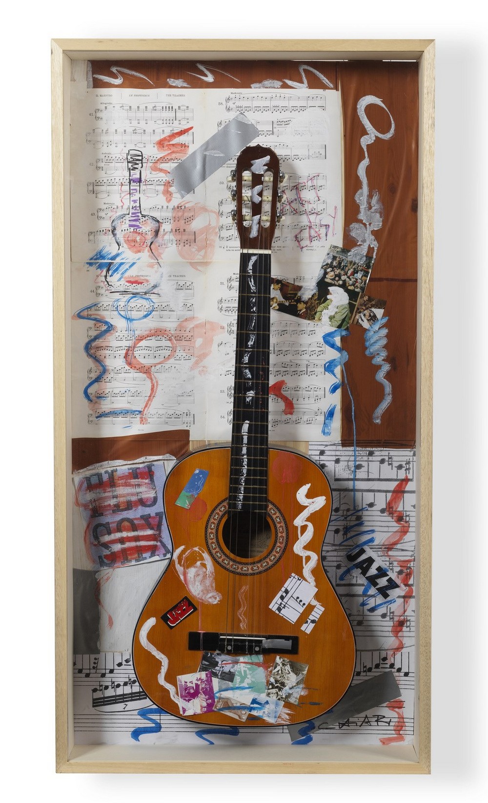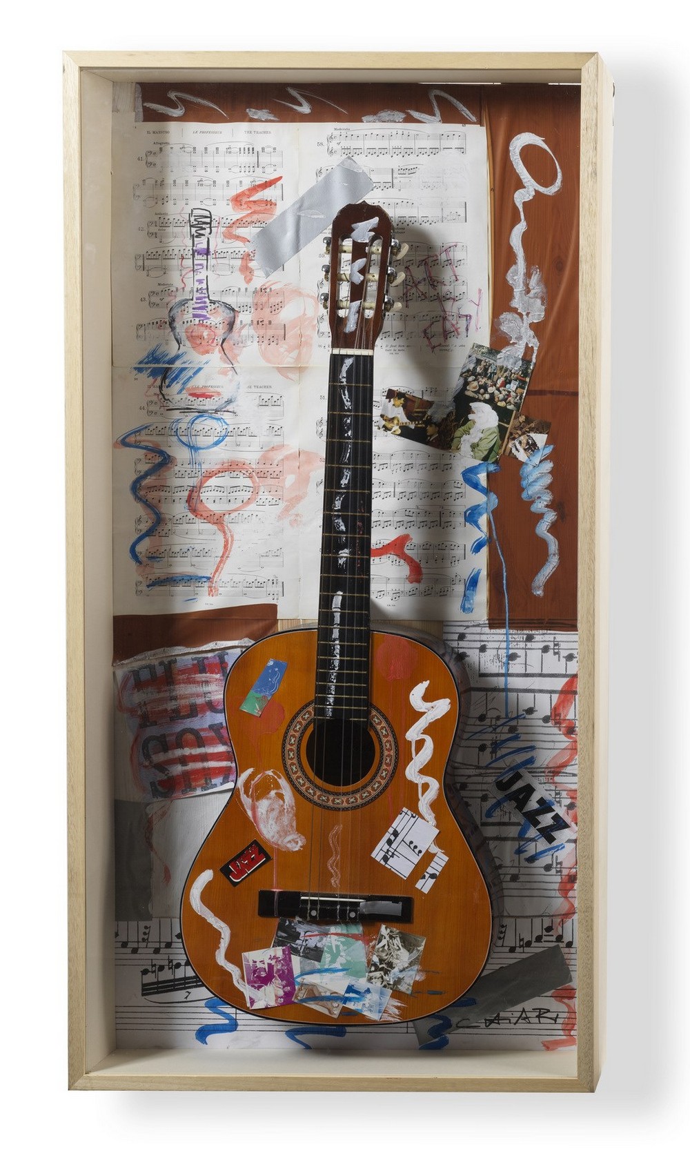 CHIARI GIUSEPPE (1926 - 2007). Chitarra.. Firma in basso a destra. Autentica dell'artista su fotografia. Entro teca di legno.. Cm 60,00 x 120,00.