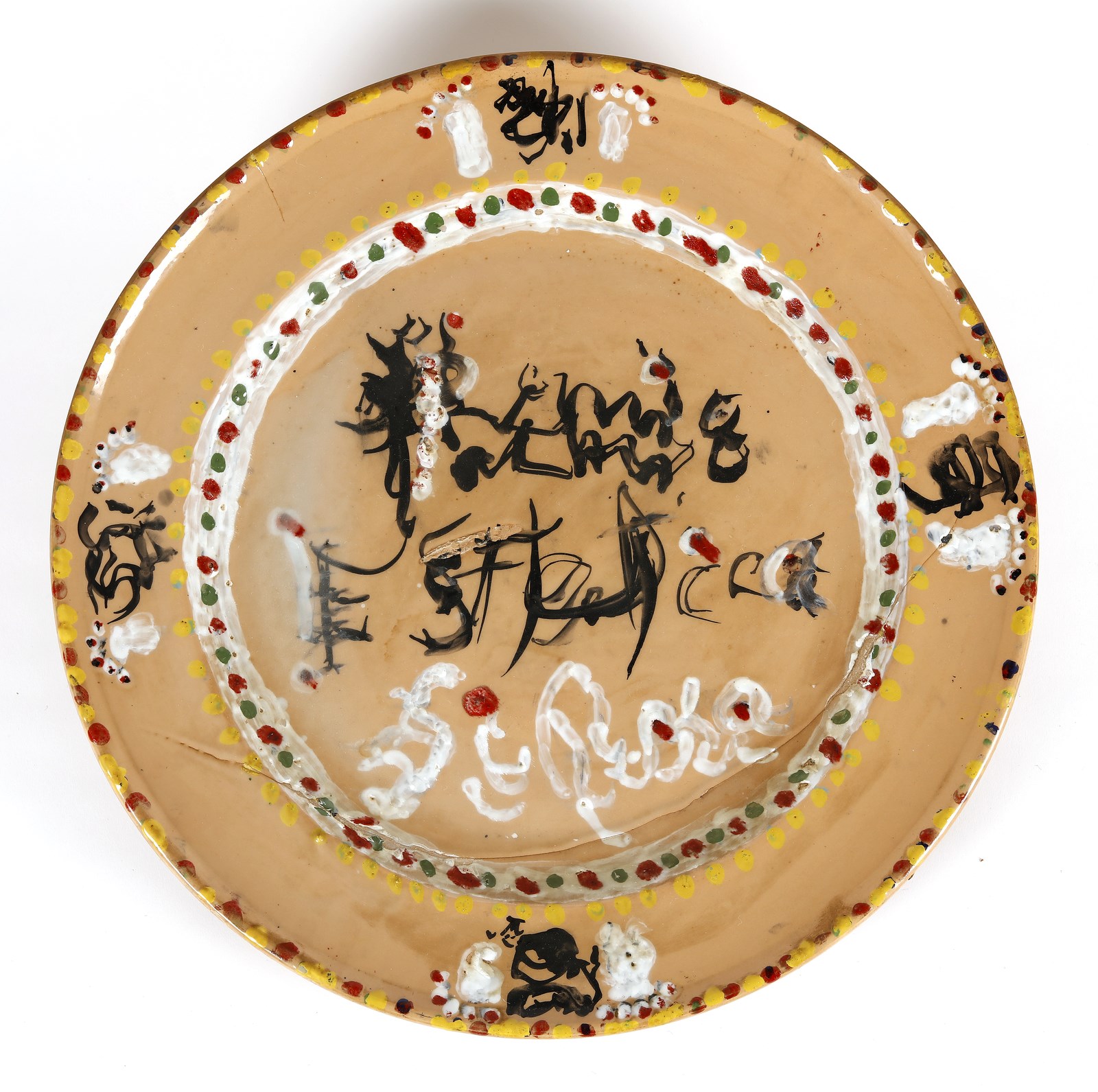 MATTA ROBERTO SEBASTIAN ANTONIO (1911 - 2002). Senza titolo.. Firma in basso al centro. Autentica su fotografia di Omero Bordo - Archivio Ceramica Scultura Etruscoludes, Tarquinia. L'opera consiste in un regalo con dedica personalizzata: ""Premio estetica Silvana"". Provenienza: Collezione Passamonti Marozzi, Tarquinia.. Cm 54,00 x 54,00.