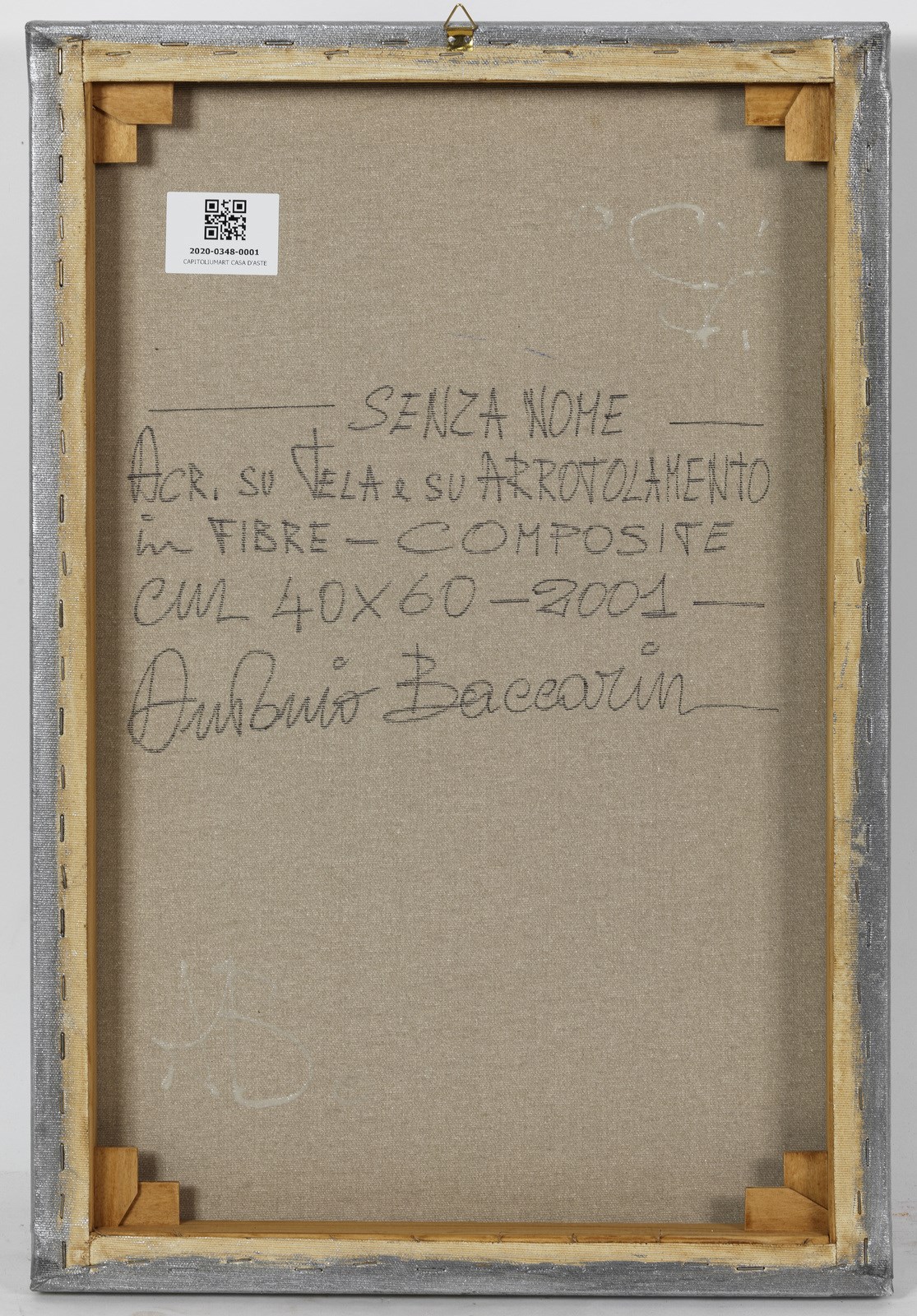 BACCARIN ANTONIO (n. 1954). Senza titolo.. Al retro firma e anno. Autentica dell'artista su fotografia.. Cm 40,00 x 60,00. 2001