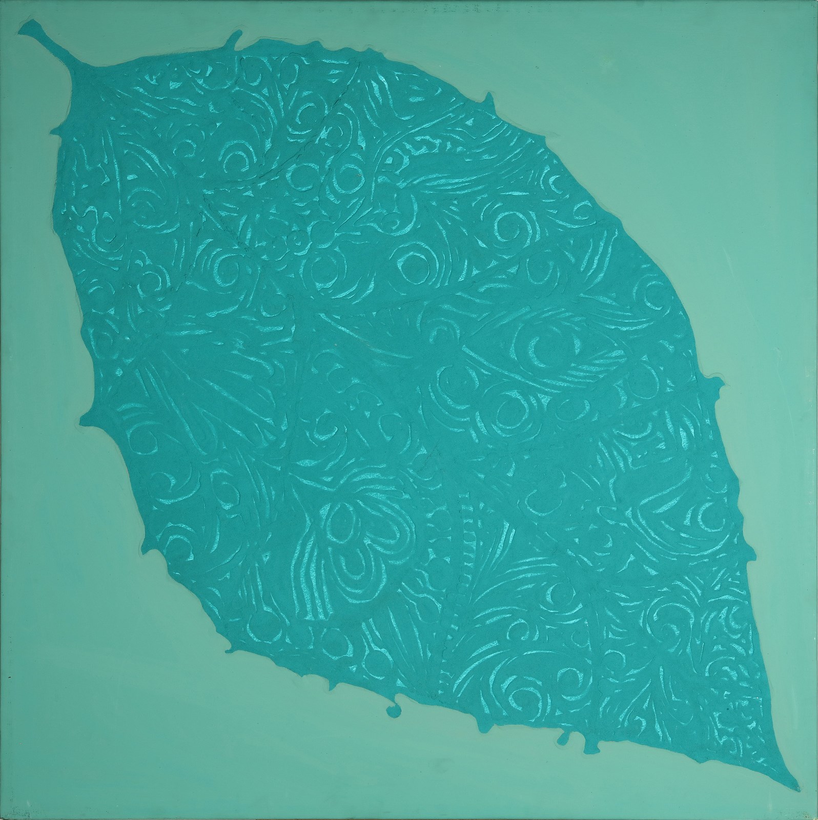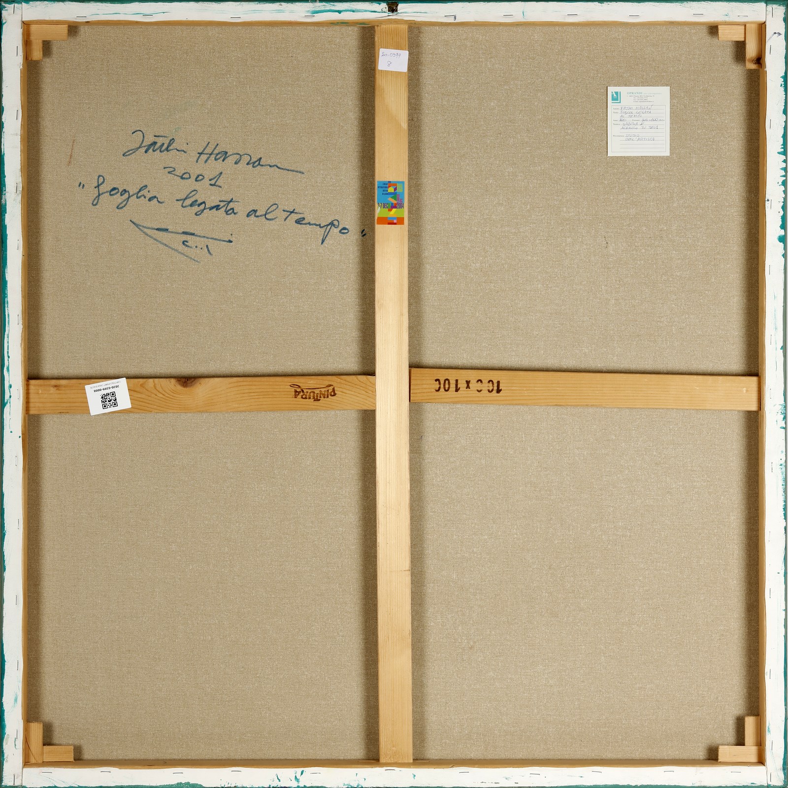 HASSAN FATHI (n. 1957). Foglia legata al tempo.. Firma, titolo, data al retro. Al retro etichetta Bologna Arte Fiera 2004 e cartiglio descrittivo Oprandi Arte. Certificato di garanzia Art House Auction, Taranto.. Cm 100,00 x 100,00. 2001