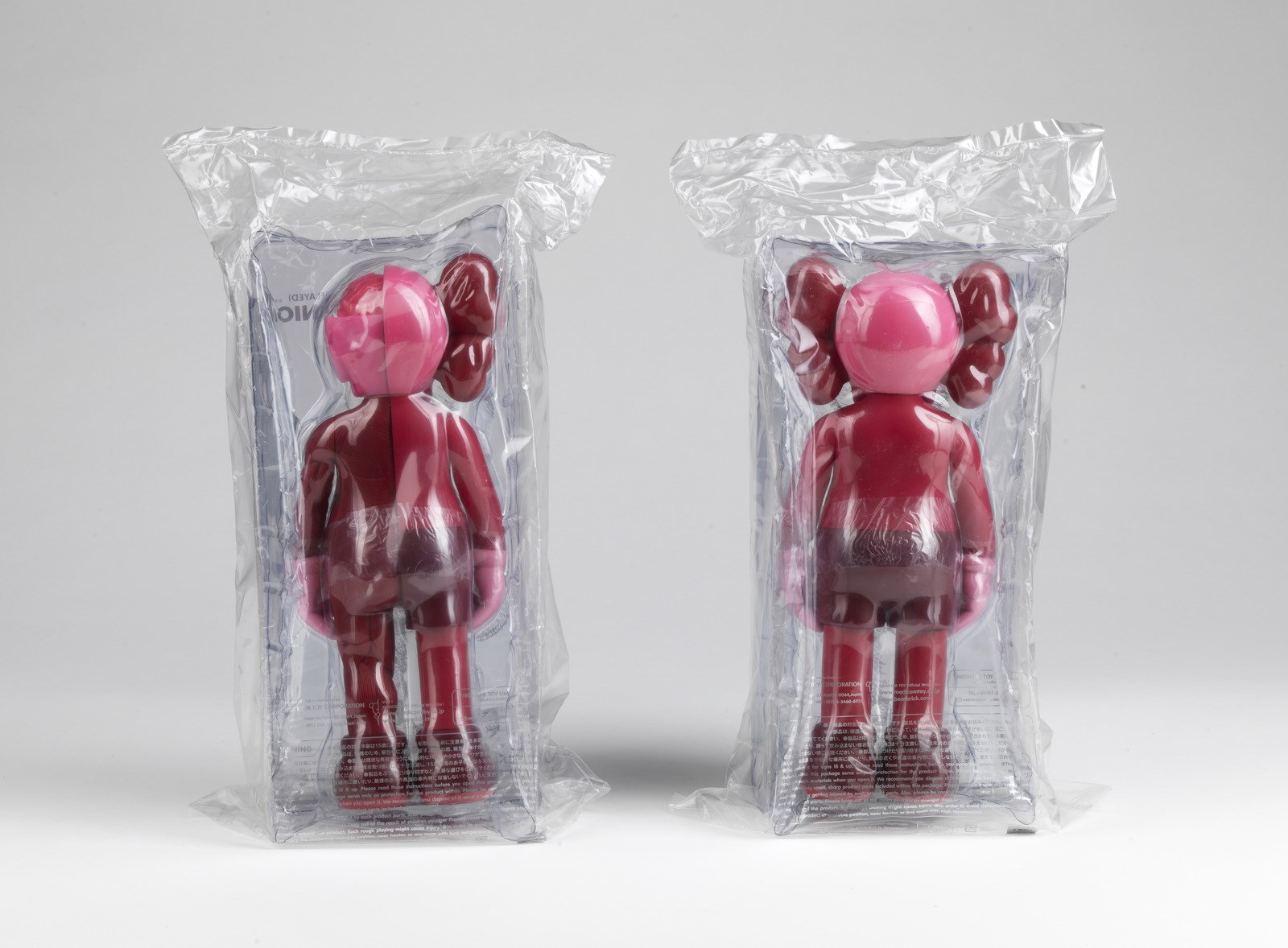 KAWS (n. 1974). Companion: Blush (Full Body & Flayed). Due multipli in vinile dipinto, 2017, nome dell'artista, data, fabbricatore e titolo stampati alla base, contenuti nella confezione originale Medicom Toy, da un'edizione aperta edita da Medicom Toy, Giappone.. Cm 12,00 x 27,00 x 6,00. 2017