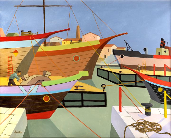 PINO PONTI<BR>Venezia 1905 - 1999<BR>"Navi a Venezia" metà anni '940