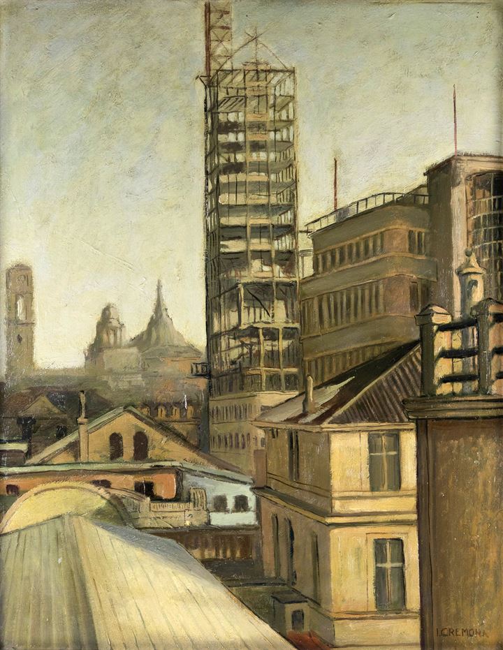 ITALO CREMONA<BR>Cozzo Lomellina (PV) 1905 - 1979 Torino<BR>"Costruzione della Torre Littoria di Torino " 1933-1934 circa