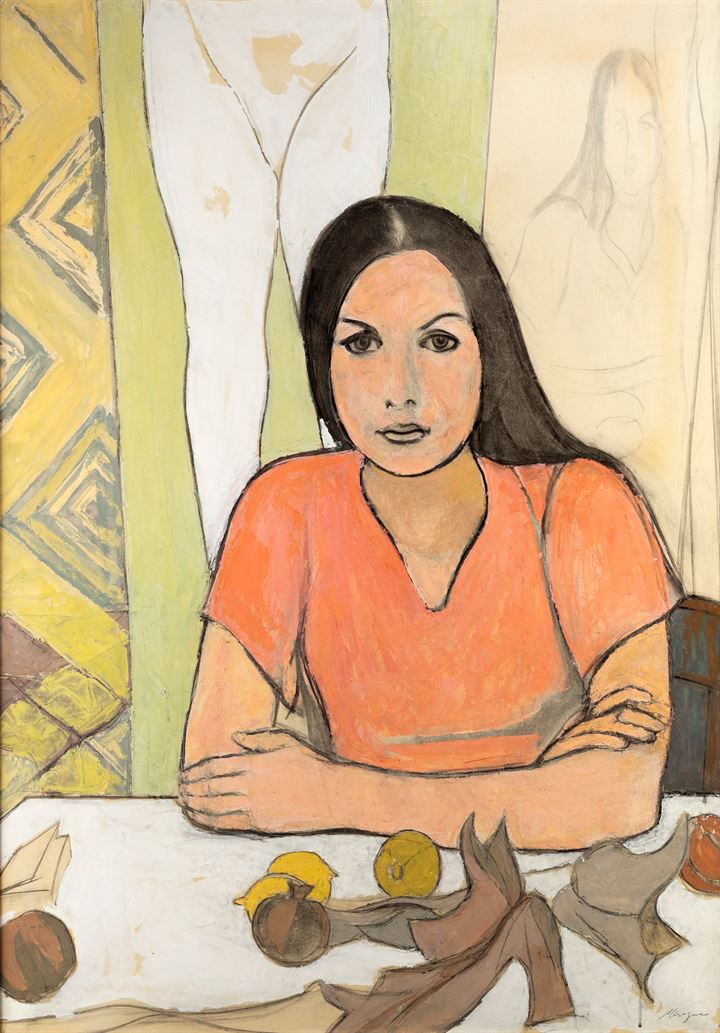 FRANCESCO MENZIO<BR>Tempio Pausania (SS) 1899 - 1979 Torino<BR>"Carla appoggiata al tavolo"