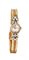 Cassa in oro giallo con anse ricavate da una composizione di diamanti taglio brillante che incernierano il bracciale integrato in oro giallo a maglia finissima. Quadrante bianco con indici applicati.