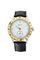 Cassa in acciaio con lunetta in oro recante incise le 12 ore. Quadrante bianco con indici geometrici e numeri arabi ai quarti applicati; indicazione dei secondi continui ad ore 6.