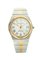 Cassa in acciaio con lunetta dorata di forma ottagonale. Quadrante bianco con numeri romani