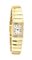 Cassa in oro giallo, di forma rettangolare reversibile. Bracciale integrato a sezioni geometriche. Quadrante serigrafato con numerazione romana.