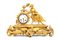 in bronzo dorato (difetti); parte inferiore di forma geometrica decorata con volute vegetali; parte superiore con damina, seduta, in abiti settecenteschi intenta nel leggere un libro. Quadrante in smalto con numeri romani serigrafati (difetti)