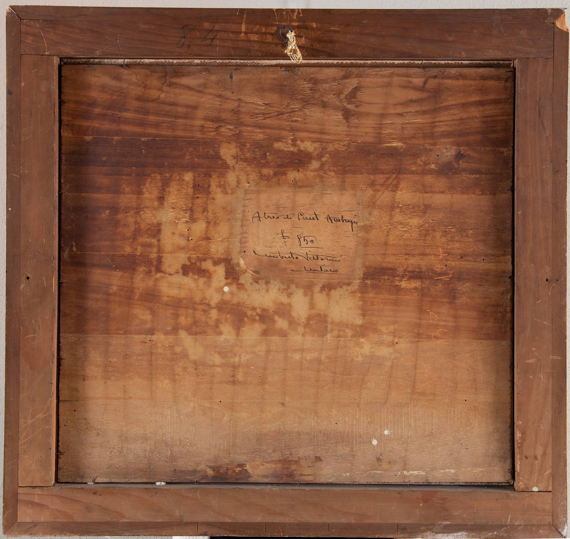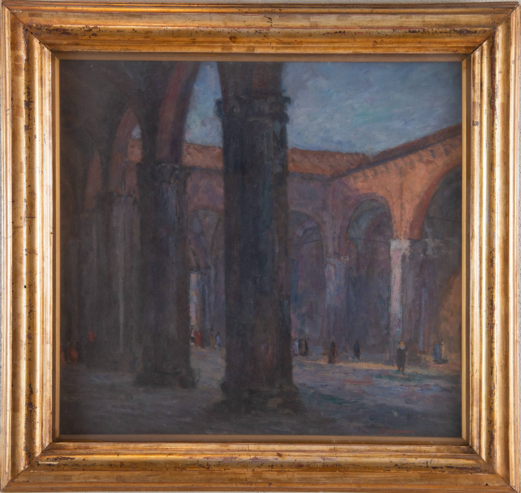 UMBERTO VITTORINI (Barga 1890 – Milano 1979) “Atrio di Sant’Ambrogio”. Olio su tavola. Cm 50x54,5. Opera firmata in basso a destra Vittorini. Al retro opera intitolata e firmata Atrio di Sant’Ambrogio Umberto Vittorini.