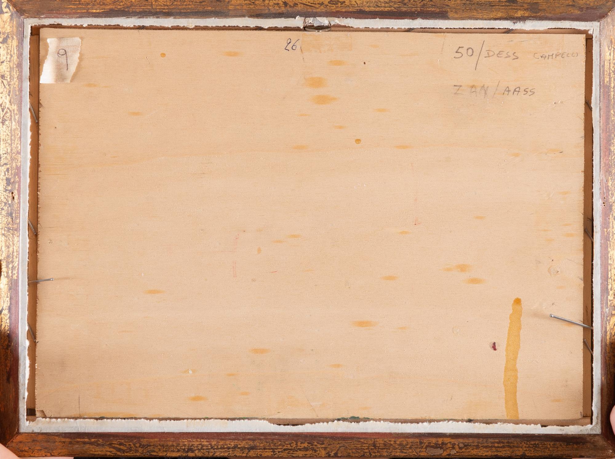 MINO MACCARI (Siena 1898 – Roma 1989) “Figure”. Olio su tavola. Cm 21,5x30. Opera firmata in basso a sinistra Maccari. Opera accompagnata da doppia autentica su fotografia del maestro.