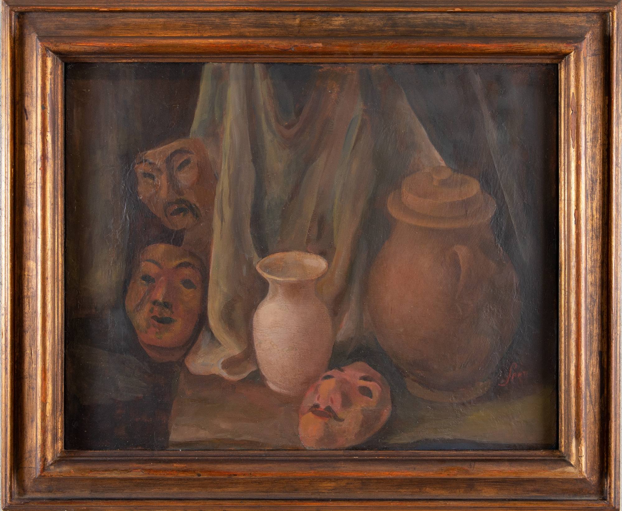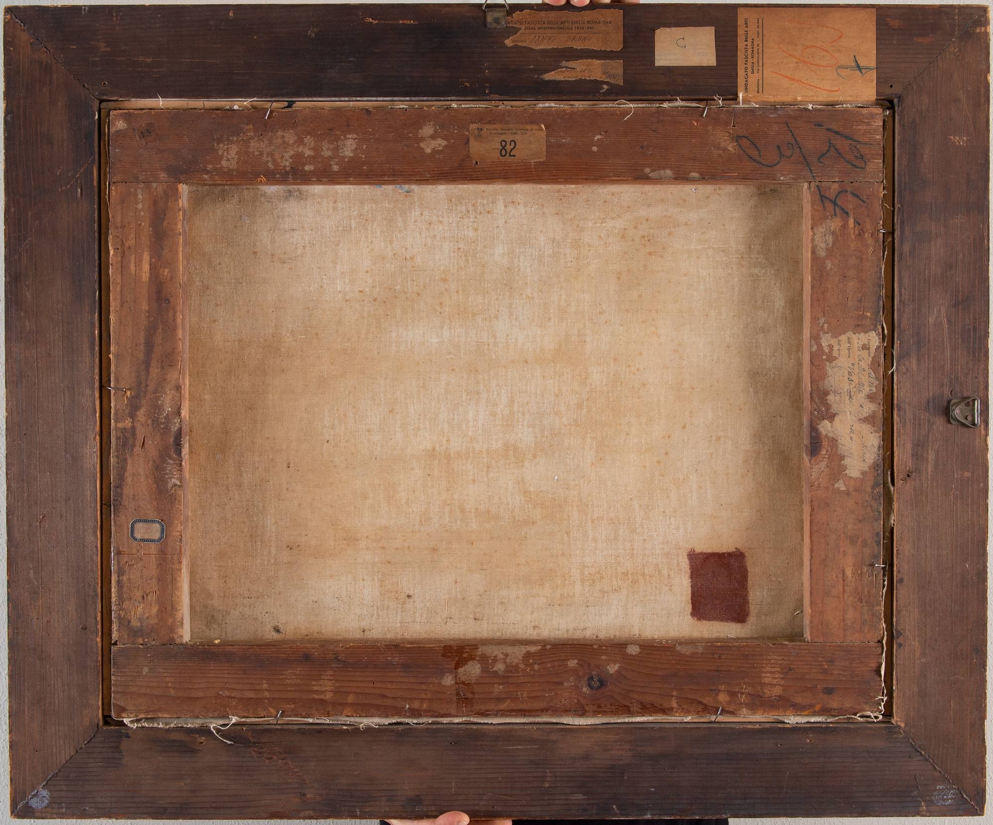 BRUNO SANTI (Firenze 1892 - ?) “Vasi di cera”, anni 30. Olio su tela. Cm 55x70. Opera firmata in basso a destra Santi. Al retro reca etichetta Sindacato Fascista Belle arti Emilia Romagna – Mostra Interprovinciale 1938 – XVI; etichetta Sindacato Fascista Belle Arti Emilia Romagna – Bologna via Castiglione 25. Reca etichetta XX Esposizione Biennale Internazionale d’Arte di Venezia 1936 XIV; reca altre etichette parzialmente leggibili.