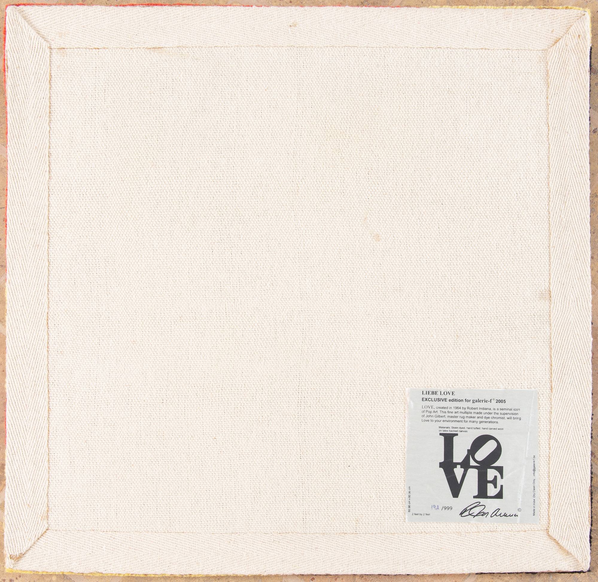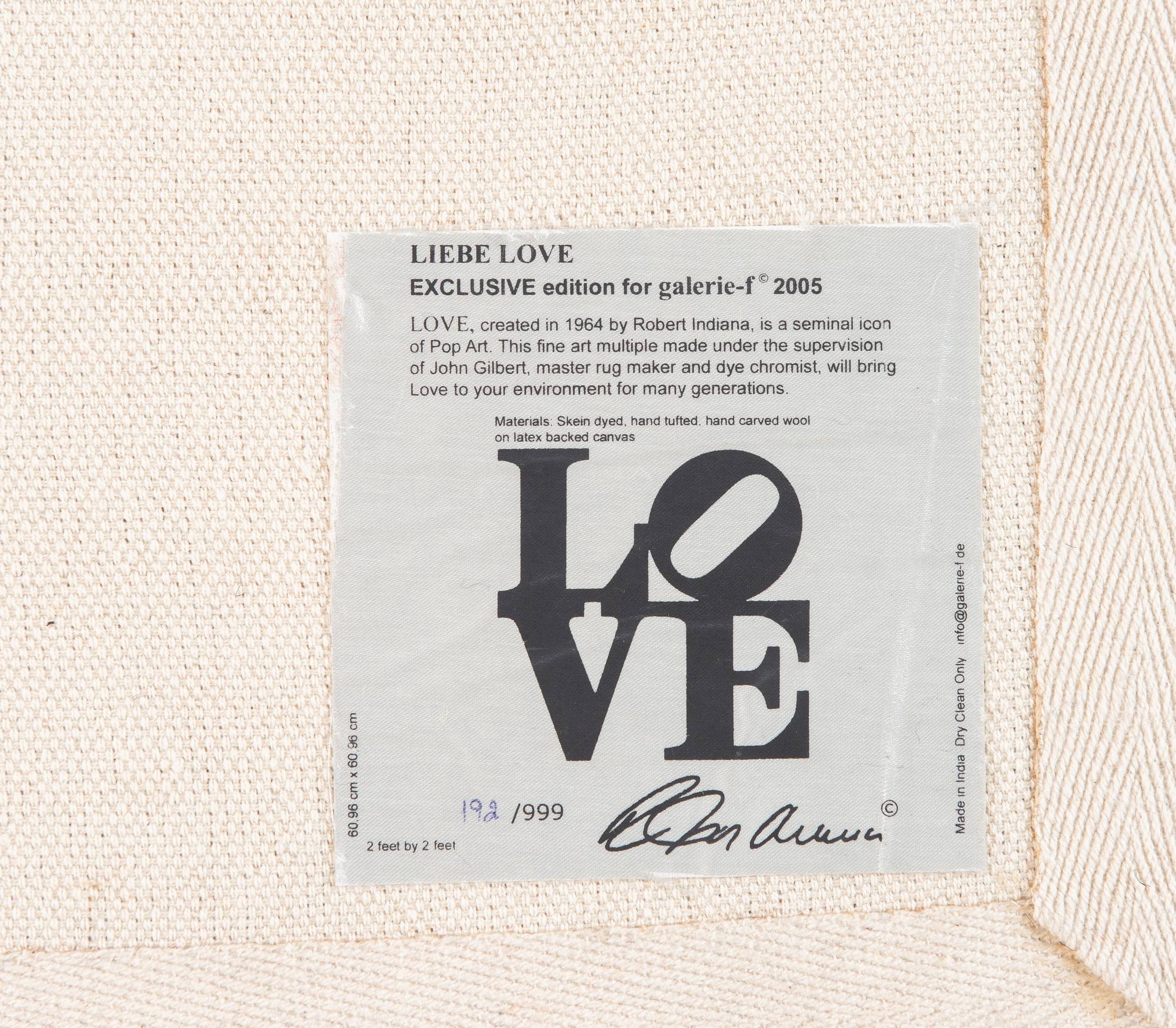ROBERT INDIANA (New Castle 1928 - Vinalhaven 2018). "Liebe Love". Arazzo tappeto. Cm 60,9x60,9. Numeri di tiratura al retro 192/999. Al retro reca etichetta firmata dall'artista.