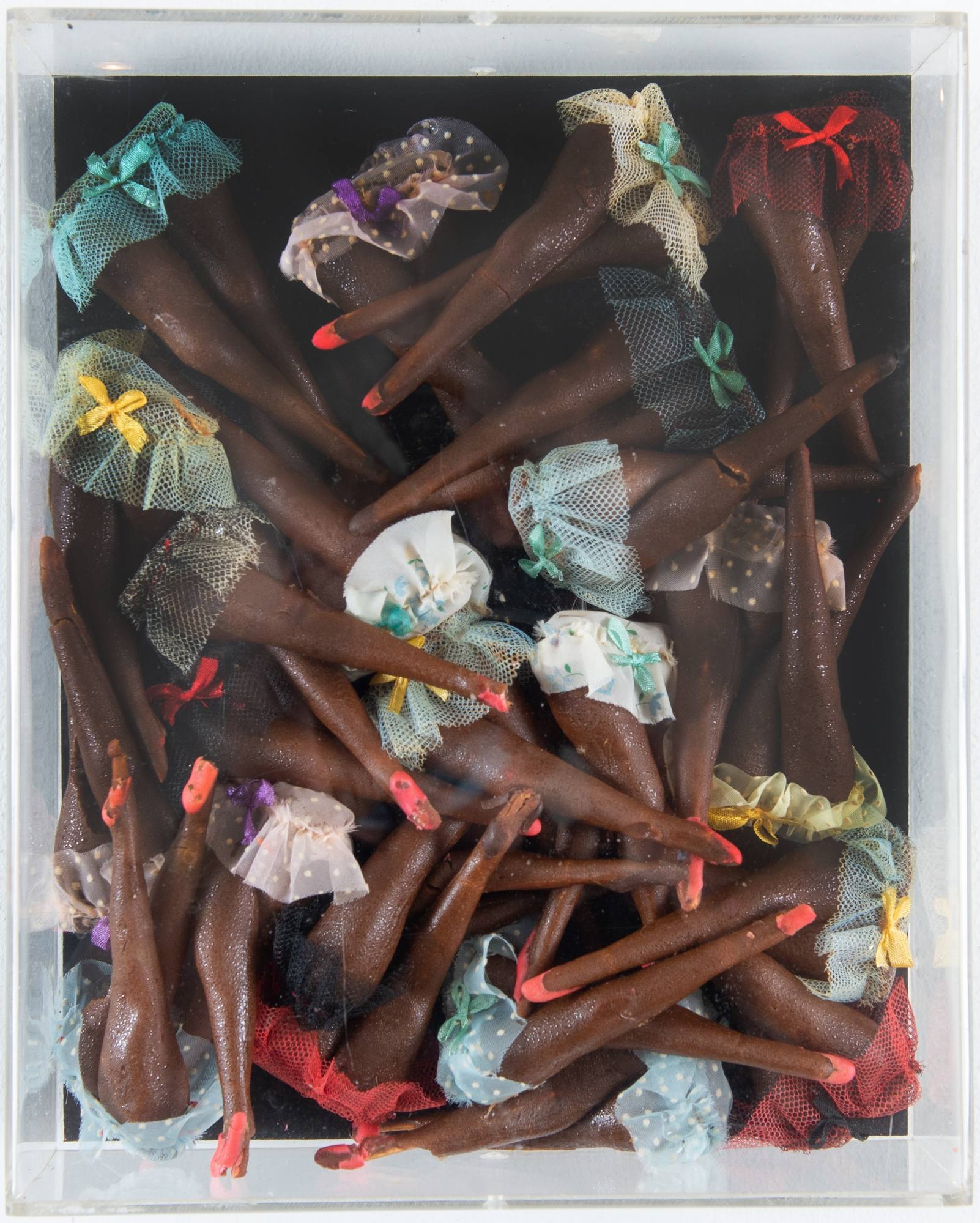 FERNANDEZ ARMAN (Nizza 1928 – New York 2005) “Candy”, 1970. Accumulazione. Cm 33x26,5x8. Opera accompagnata da litografia con valenza d’autentica firmata e datata in basso a destra dall’artista Arman 70, numeri di tiratura in basso a sinistra E.A., di cm 60x44,5.