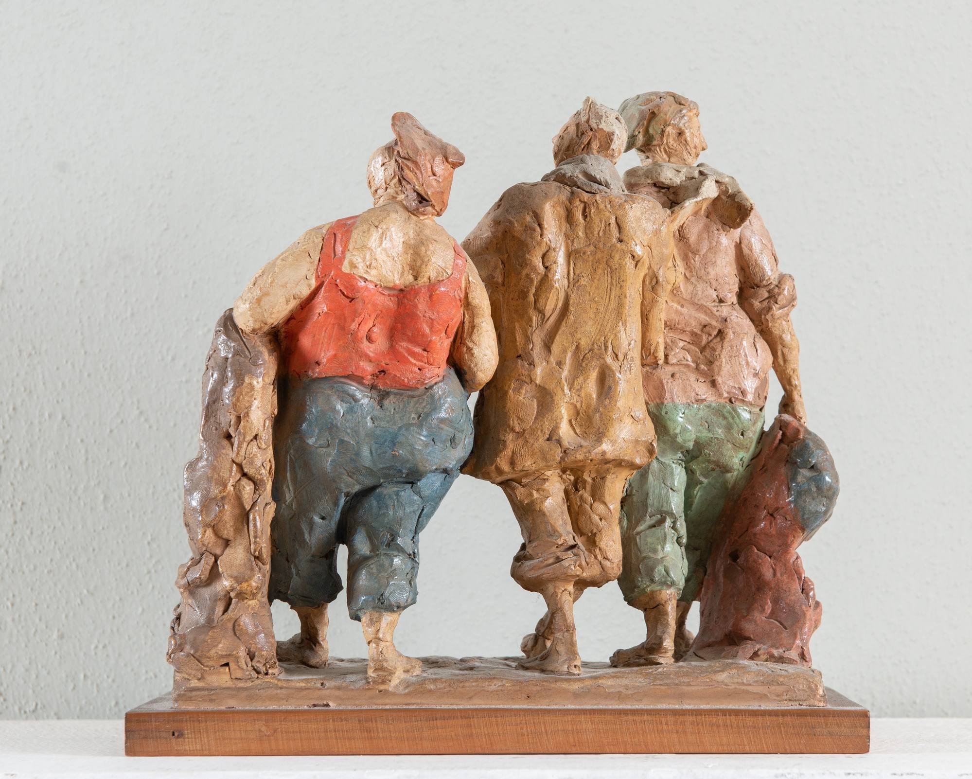CLETO TOMBA (Castel San Pietro Terme 1898 – Bologna 1987) “Ferragosto”, 1955/60. Scultura in terracotta policroma applicata su tavola in legno. Cm 23x24x13,5. Opera firmata alla base Tomba. Reca timbro alla base Tomba. Bibliografia: opera pubblicata in G. Ruggeri, Cleto Tomba, per la mostra, Galleria La Meridiana (Bologna), 1979; L. Bertacchini, Cleto tomba (1898 – 1987), catalogo della mostra, Bologna, 2001, pag. 123; Alfonso Panzetta, Cleto Tomba, ironie inedite, per la Galleria Giordani (Bologna), pag. 116 e 117. Provenienza: Galleria Giordani (Bologna), importante collezione privata, Bologna.