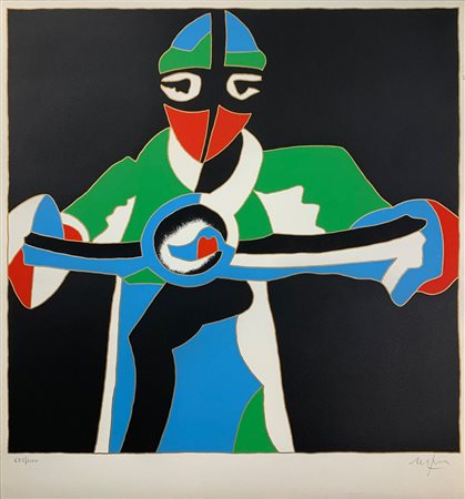 Ugo Nespolo IL MOTOCICLISTA serigrafia su carta, cm 54x50; es. 687/1000 firma