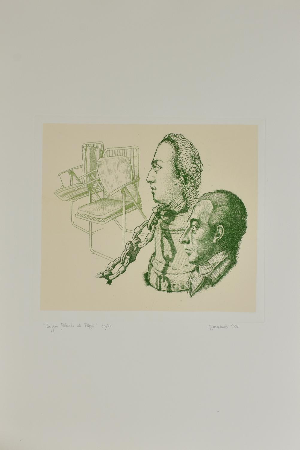 Giuseppe Guerreschi DOPPIO RITRATTO DI FUSSLI incisione su carta, foglio cm...