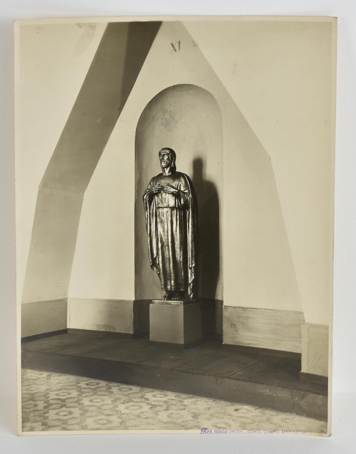 in bianco e nero raffiguranti opere scultoree in pietra e metallo di autori vari, tra cui Edoardo Rubino