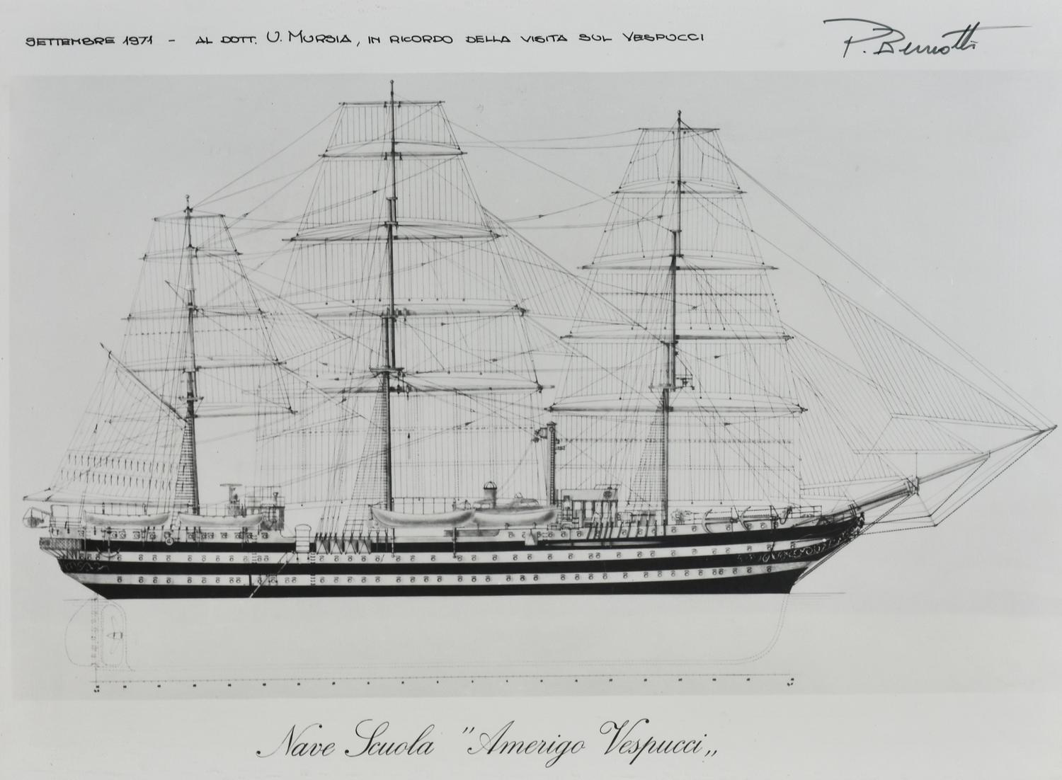 NAVE SCUOLA AMERIGO VESPUCCI foto riproduzione del modello in scala, cm 30x40