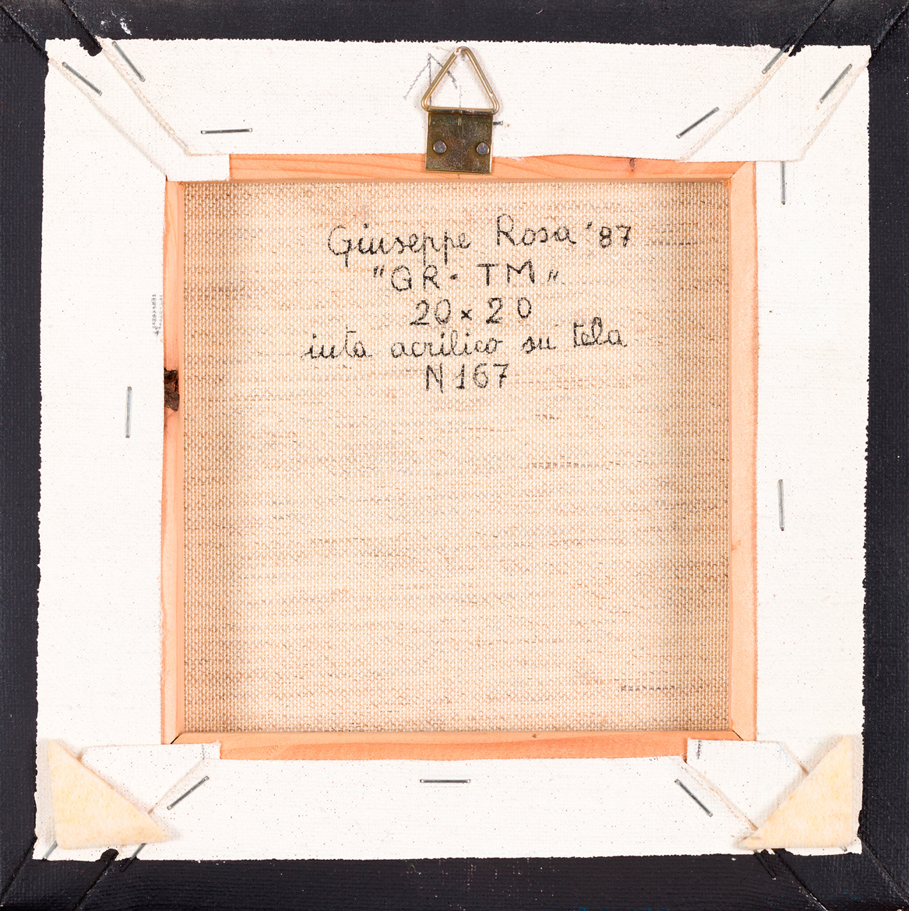 Firma, titolo, misure, tecnica, datazione e numero di repertorio (167) al retro