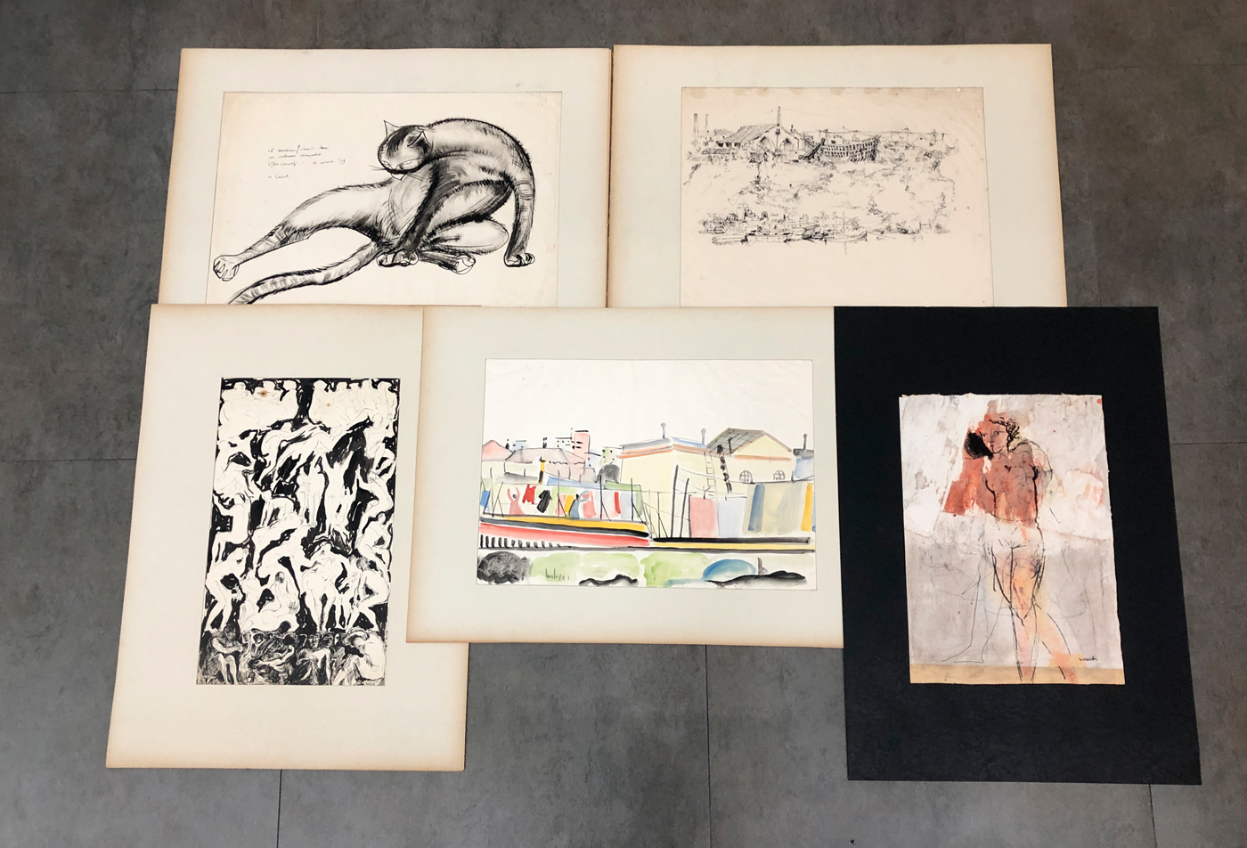 Lotto unico di 15 opere tra disegni, tecniche miste e opere grafiche