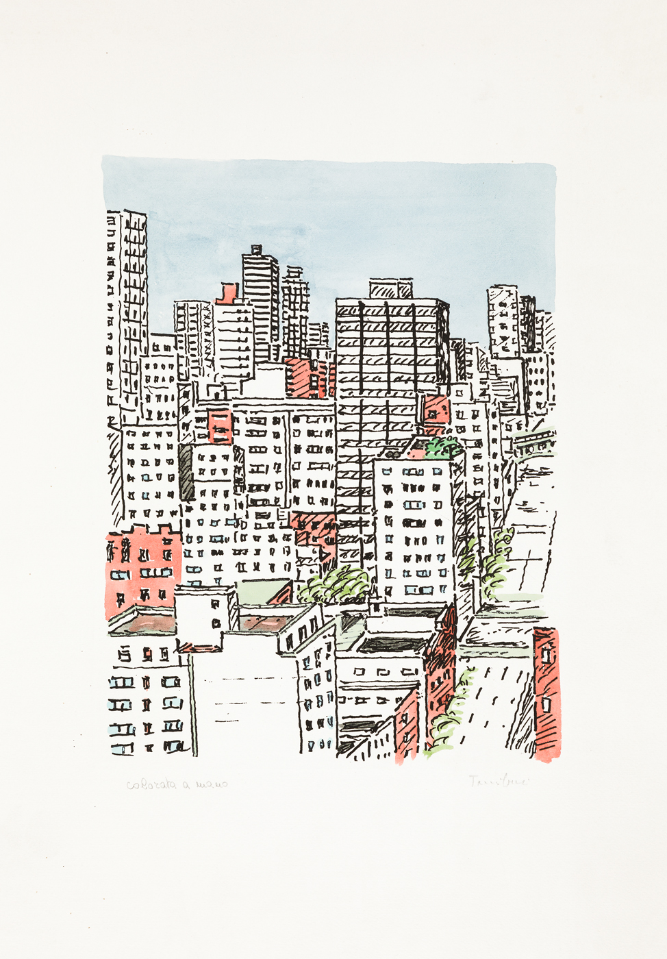 Firma e numerazione (Colorata a mano) a matita al fronte