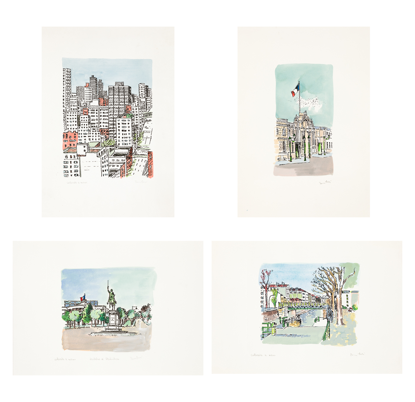Lotto unico di 4 acqueforti: