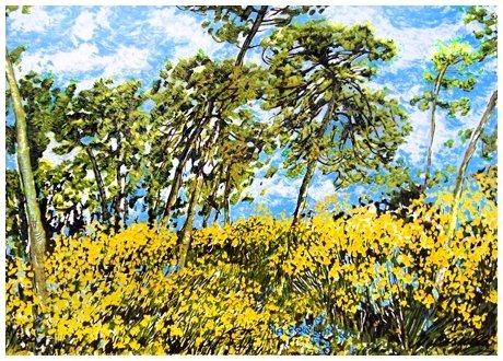 MICHELE CASCELLA Ortona 1892 – Milano 1989 Ginestre a S. Luigi 1984 Serigrafia – litografia a 30 colori su tela 50 x 70, es.54/300. Firma in b. a d.; sul verso certificazione di autenticità. L’opera raffigura il dipinto omonimo del 1970 pubblicato nel “Catalogo ragionato generale dei dipinti di Michele Cascella” a cura di Giuseppe Bonini, Giorgio Mondadori Editore, Milano 1988, p.270, n.70/3. Tiratura: 300 es. num. arabi + C. es. num. romani + alcune prove d’autore. Autentica Anna Cascella su foto. Certificato di autenticità Telemarket, Roncadelle.