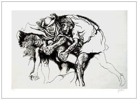 RENATO GUTTUSO Bagheria 1912 – Roma 1987 Nerone nella suburra 1974 Incisione es.7/80. Firma in b. a d. + timbro a secco Graphis Arte, Livorno (57 x 75,5 foglio – 39,3 x 56 inc.) Opera facente parte della cartella “Neronis Vita” composta di 7 acqueforti. Tiratura: 80 es. num. arabi + XC es. num. romani + 20 es. prova d’artista. Editori: Graphis Arte, Livorno – Pantheon Presse, Agno (Canton Ticino). Stampatore: Fetthaver Loeding, Amburgo (Germania). Pubbl.:- Catalogo Bolaffi Grafica 5, 1973 – 1974, nn.109107 – 109113. -“Guttuso opera grafica” cat. a cura di Paolo Bellini, Editore Club Amici dell’Arte, Milano, 1978 p.123, n.291.