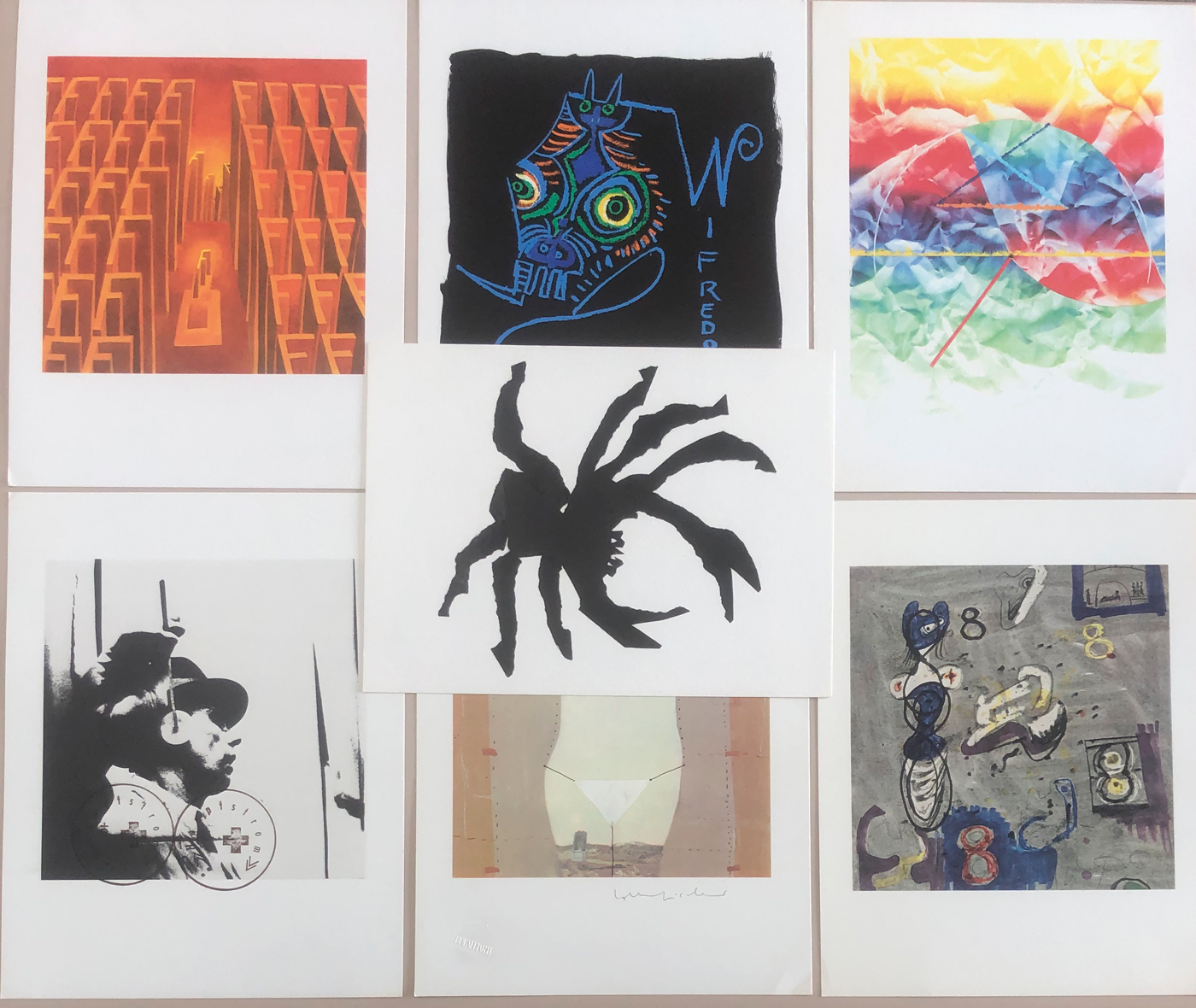 Lotto unico di 7 riproduzioni a stampa offset di opere originali dei seguenti artisti: Jim Rosenquist, Alicia Penalba, Wifredo Lam, Henry Moore, Lothar Fisher, Joseph Beuys e Jean Michel Folon