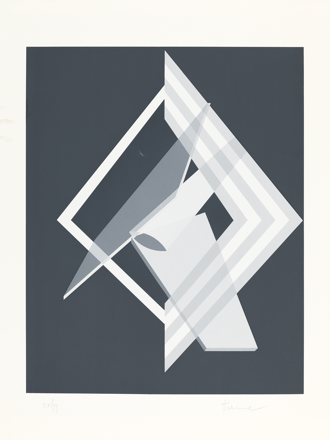 Firma e numerazione (Esemplari 20/99) a matita al fronte di ciascuna serigrafia