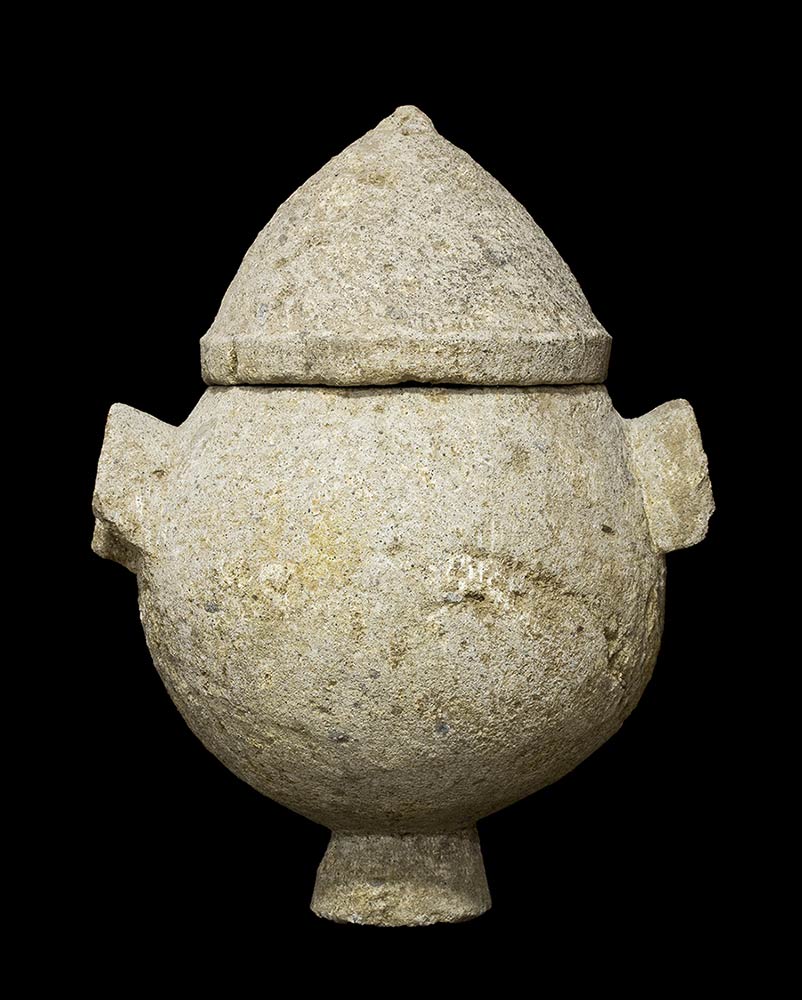 GRANDE URNA CINERARIA ROMANA IN TUFO CON COPERCHIO<br>I secolo a.C. - I secolo d.C.
