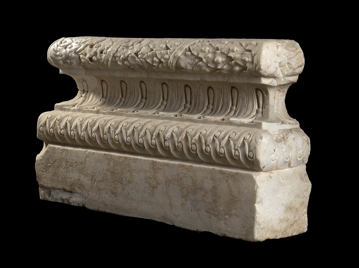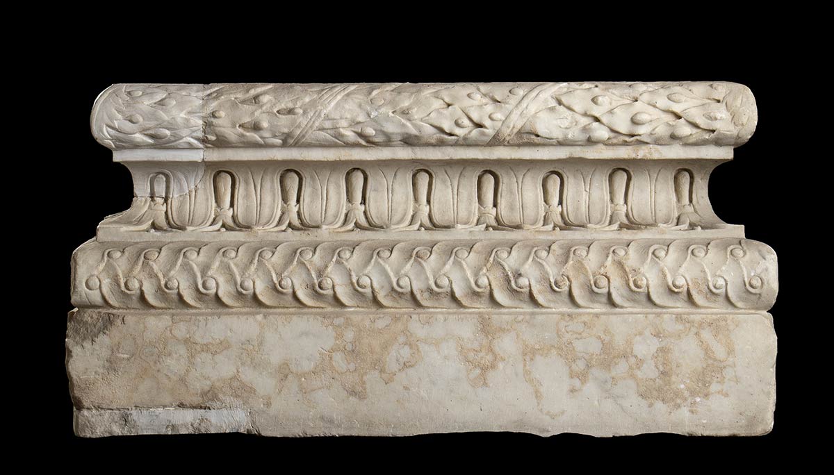 ECCEZIONALE BASE COMPOSITA DECORATA DI LESENA<br>Età traianea e adrianea, ca. 98 - 138 d.C.