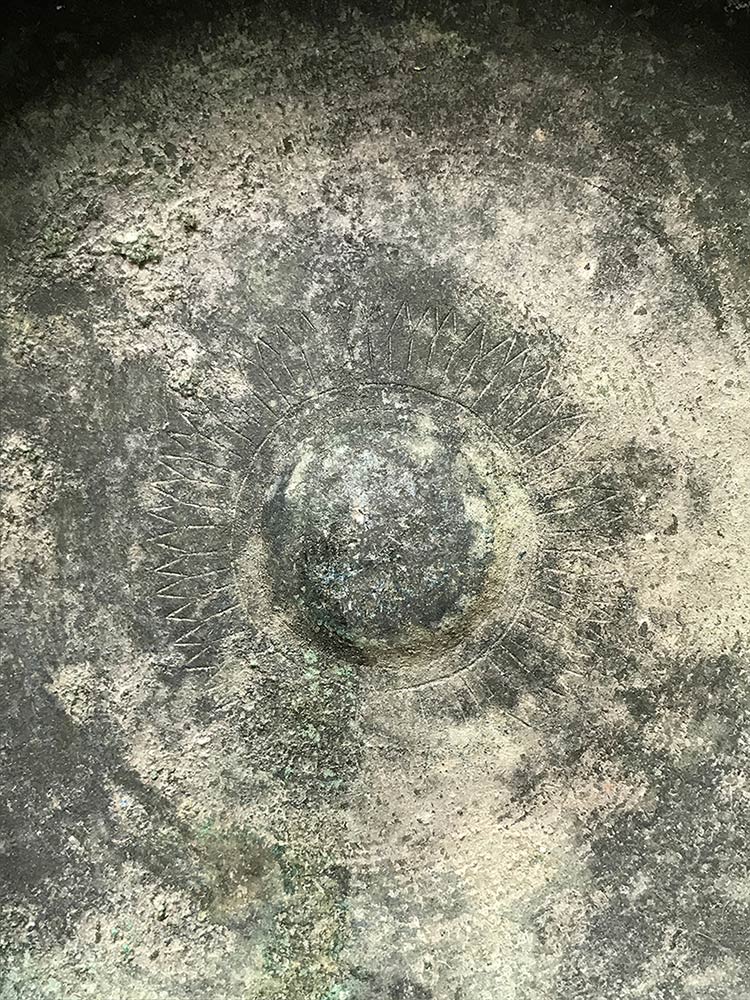 Decorazione a denti di lupo incisa all’interno intorno all’ombelico.