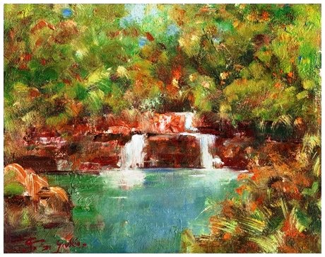 FERRUCCIO DI GIULIO (Ferruccio Rontini Junior) Piacenza 1963 – Livorno 1994 Sogno nel verde 1983 Olio su tela 19,5 x 25. Firma in b. a s.; sul verso titolo, firme e data.