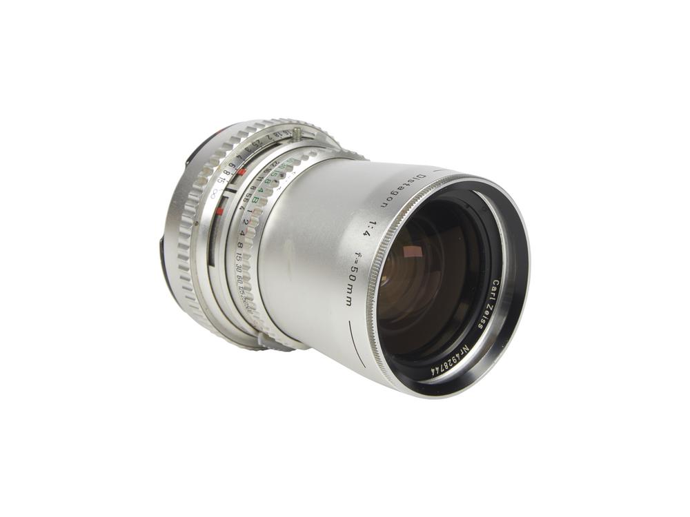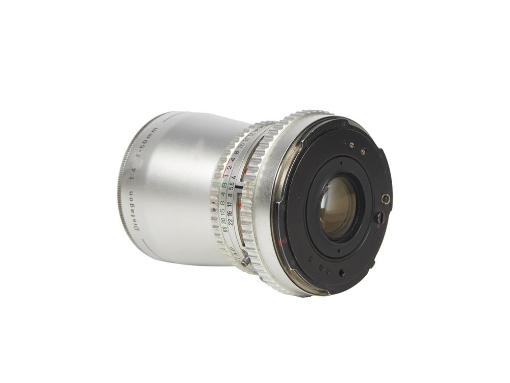 Wide-angle optics for the Hasselblad 500 series in Silver version. There are some signs of use but overall the lenses and mechanics are fully functional.