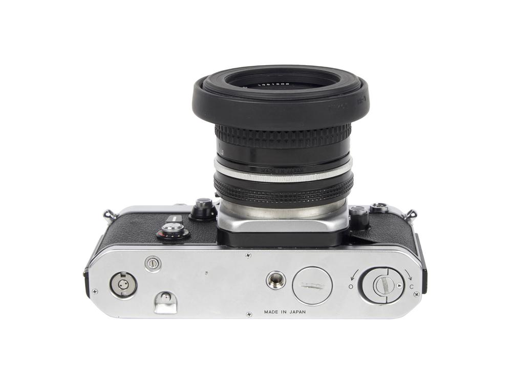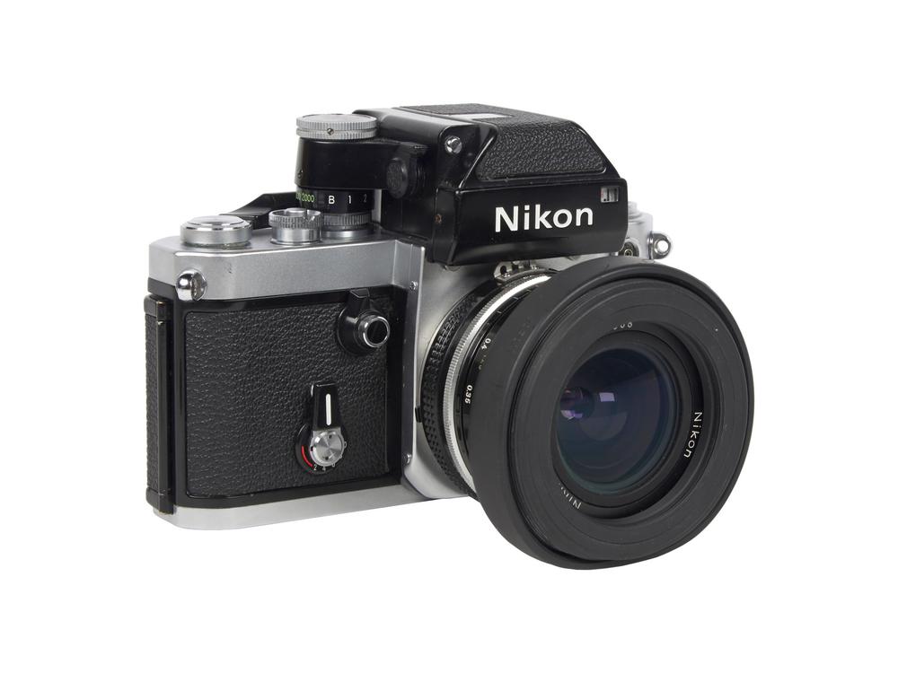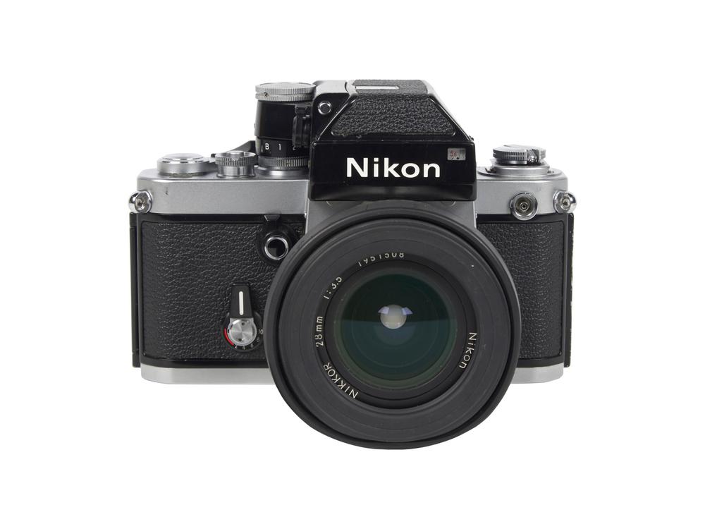 La celebre SLR professionale 35mm prodotta dal 1971 al 1980. Caratterizzata dal Photomic, il viewfinder intercambiabile innovativo per quegli anni rivoluzionari. Dotata di un ottica Nikkor 28mm f. 3.5 con matricola n°1951508. Con leggerissimi segni di utilizzo ma perfettamente funzionante.
