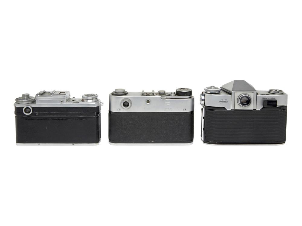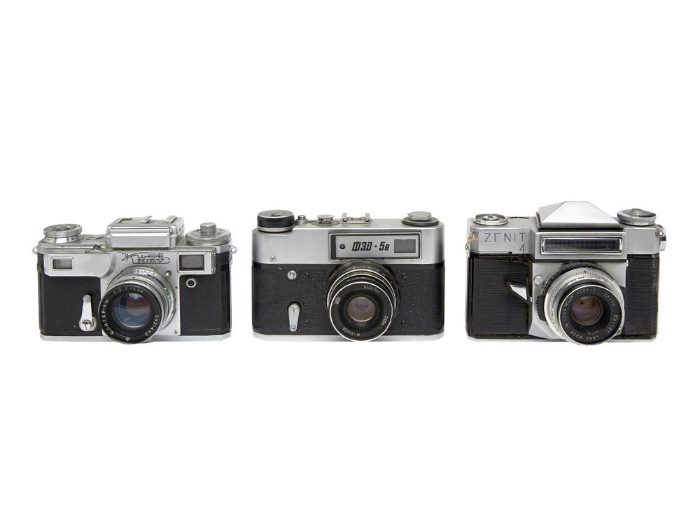Lotto di tre macchine fotografiche Sovietiche/Russe obiettivo compreso