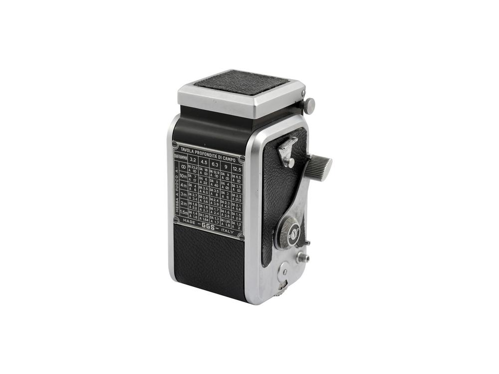 A rare 35 mm TLR camera produced in Italy, by a Milanese company in the late 1940s. It is equipped with a dual Solar Anastigmat 50 mm f. 3.2 lens. In a good condition and fully functional.